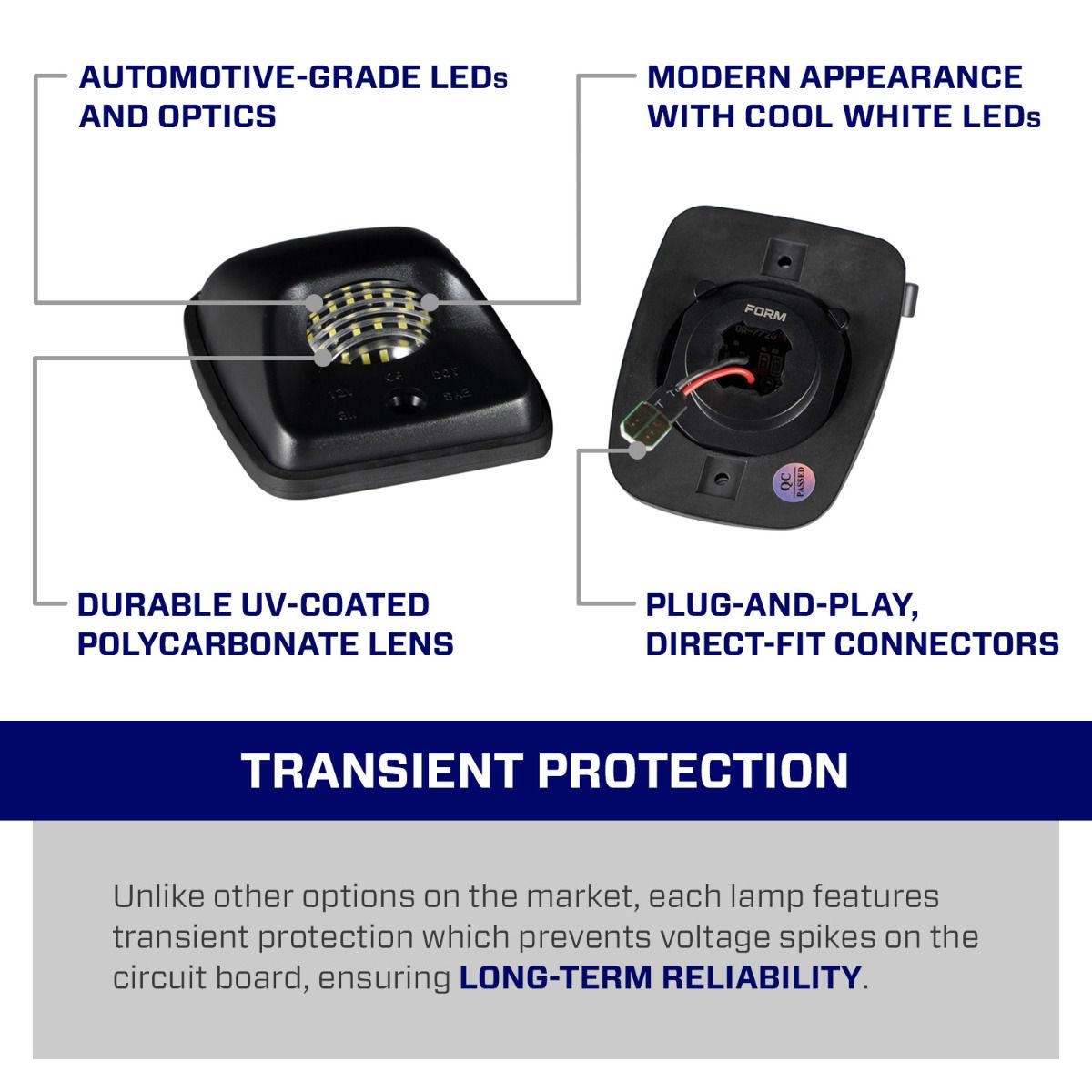 - OEM-Grade Construction: Built by FORM Lighting with a UV-coated polycarbonate lens, automotive-grade LEDs, transient protection, and sealed housing for durability.