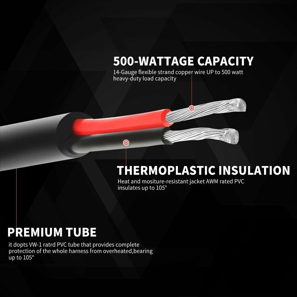 LED LIGHT BAR WIRING HARNESS KIT (2 LEADS 16AWG) WITH FUSE 12V 40A RELAY 3/4" ON/OFF SWITCH