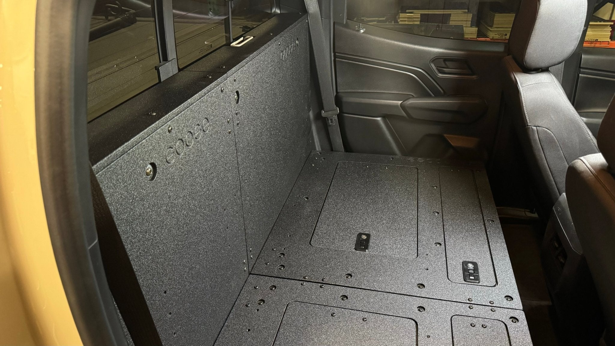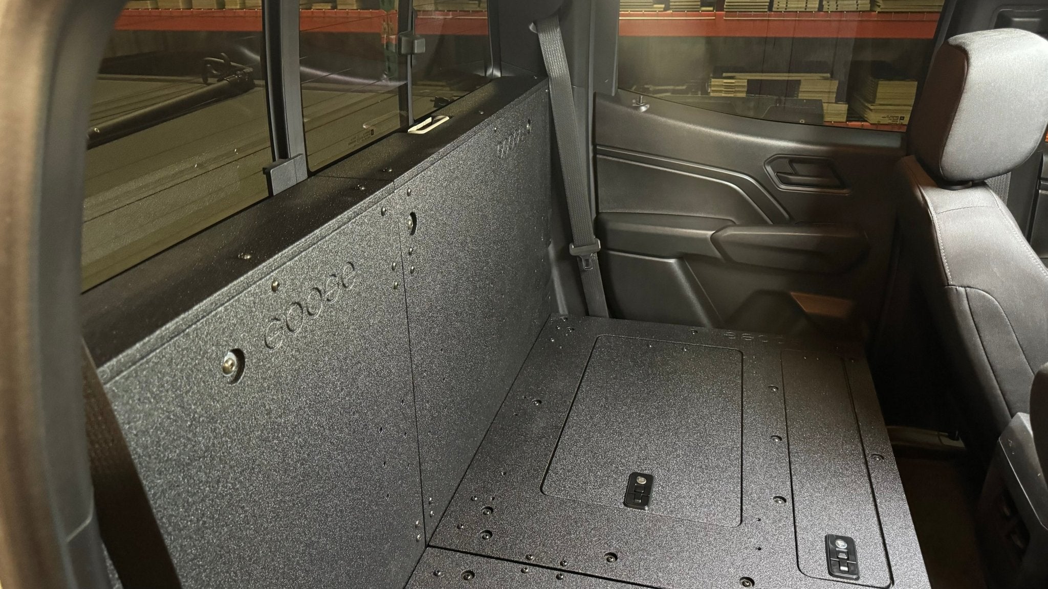 This Tacoma Seat Delete Plate System comes with a Goose Gear Back Wall Panel for both 40% Seat Delete and 60% Seat Delete.