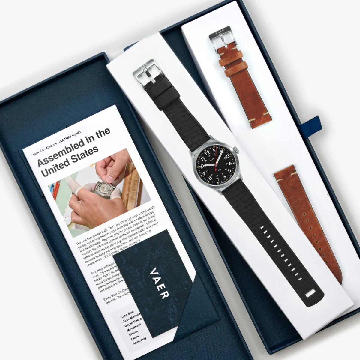 The VAER C5 Field Black Watch Solar 40 mm USA delivers timeless field-watch design, solar reliability, and American-built precision. Designed for overlanders, travelers, and everyday explorers, it’s powered by light—not batteries—so it’s always ready when adventure calls.