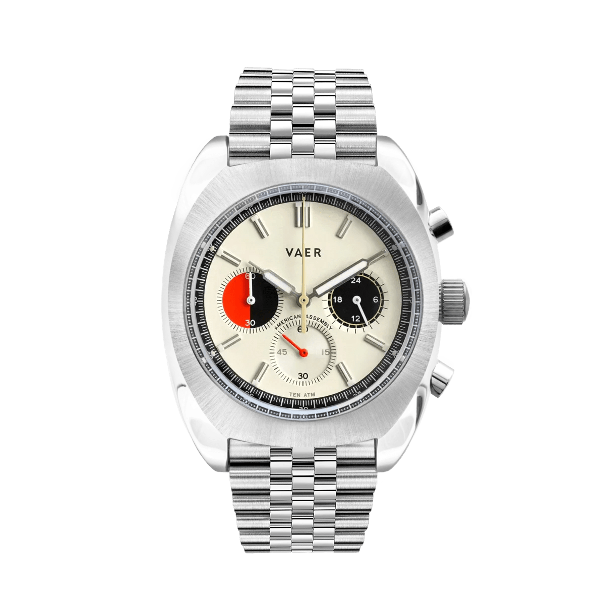 Combining motorsport inspiration and field-ready durability, the VAER R1 Racing Chronograph Cream embodies American engineering and timeless adventure design for those who live life in motion.