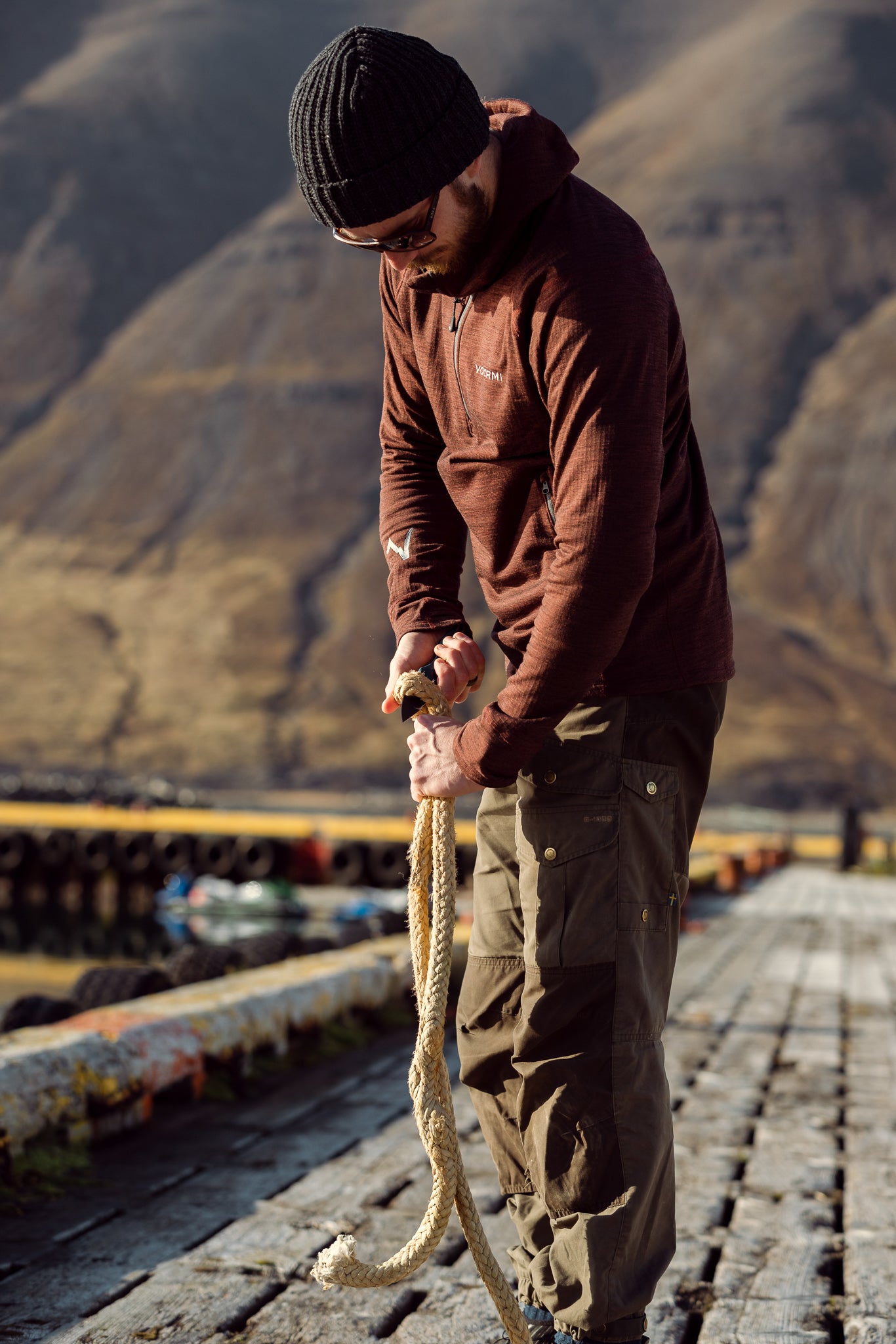 Meet the legendary High-E Hoodie from VOORMI—more than just your average sweatshirt. This adaptable piece seamlessly transitions from a breathable midlayer to a weather-resistant outer layer, making it your ultimate companion for all conditions. Crafted with innovative SURFACE HARDENED™ Thermal Wool, it keeps you comfortable and dry, while the relaxed fit makes layering a breeze.