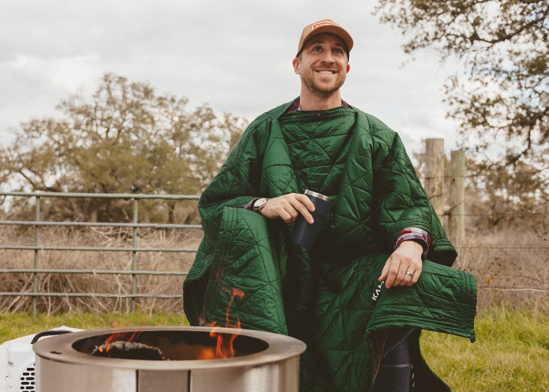 Snaps along the edge of the Mountain Blanket helps it to easily transform into different modes. From classic camp blanket, for laying out on the ground, to a minimalist sleeping bag for unexpected overnight excursions. A center opening in the blanket turns it into a stylish, yet functional poncho, a wearable blanket for staying warm and dry, while keeping your hands free. Flip the plush fleece-lined stuff sack inside out, and stuff it for a backup pillow.