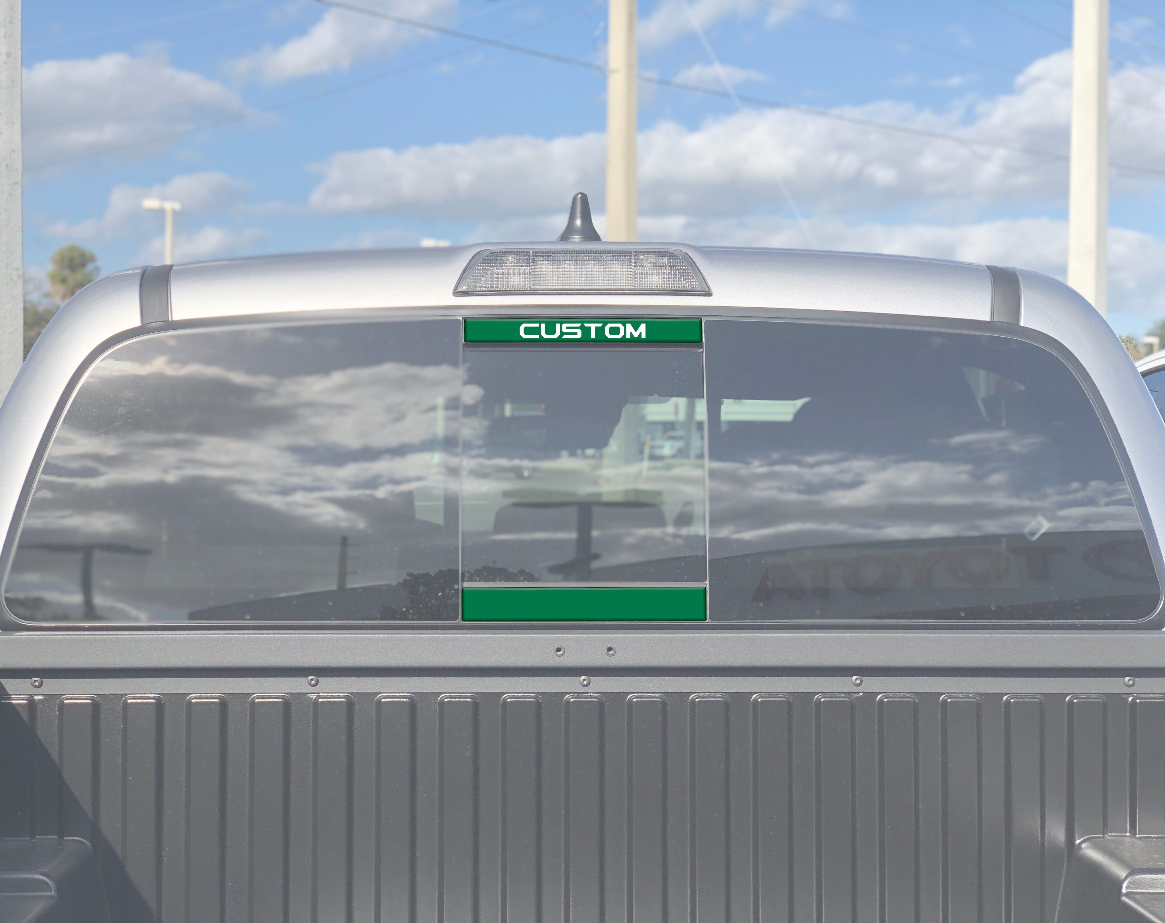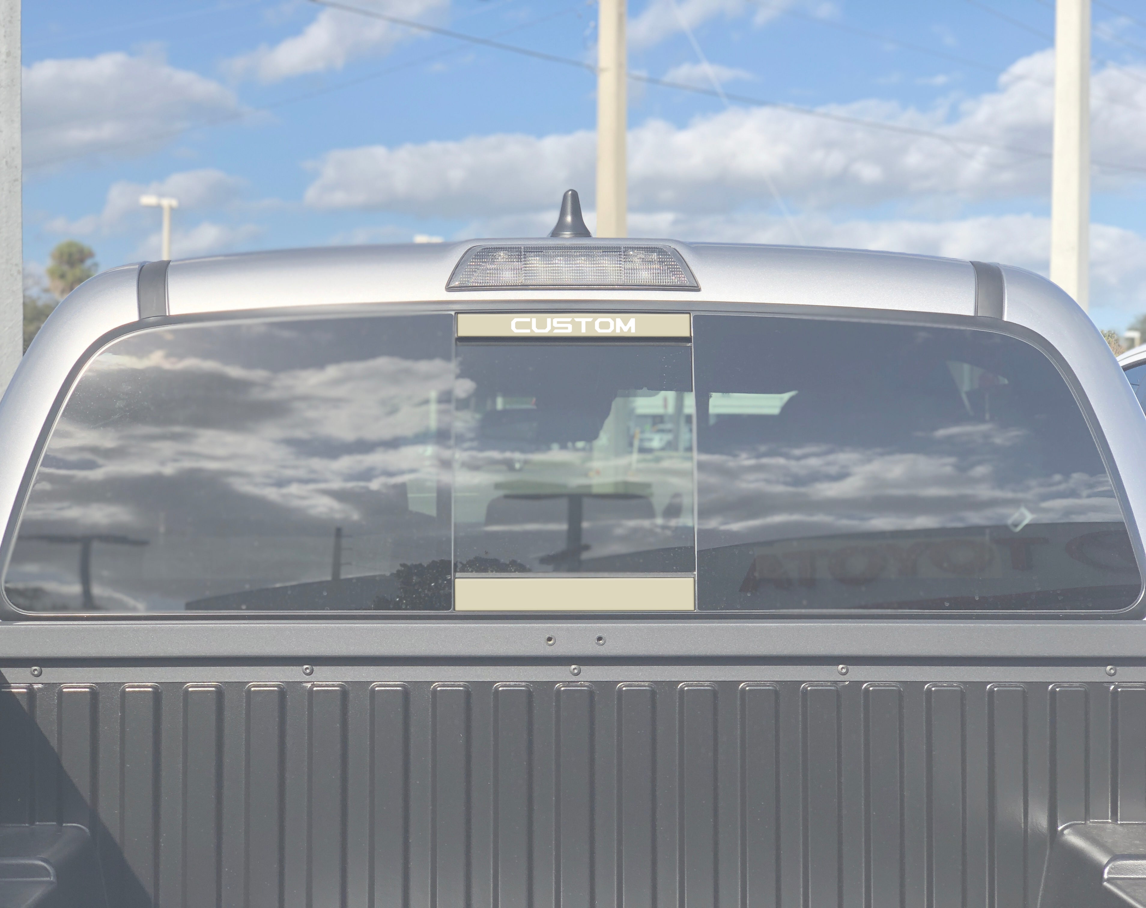 Add a new look to your Toyota Tacoma by installing TUFSKINZ Rear Power Sliding Window Accent Overlays. This kit adds style and protection to your vehicle and is fittingly positioned on top of the trim above and below the rear middle window.
