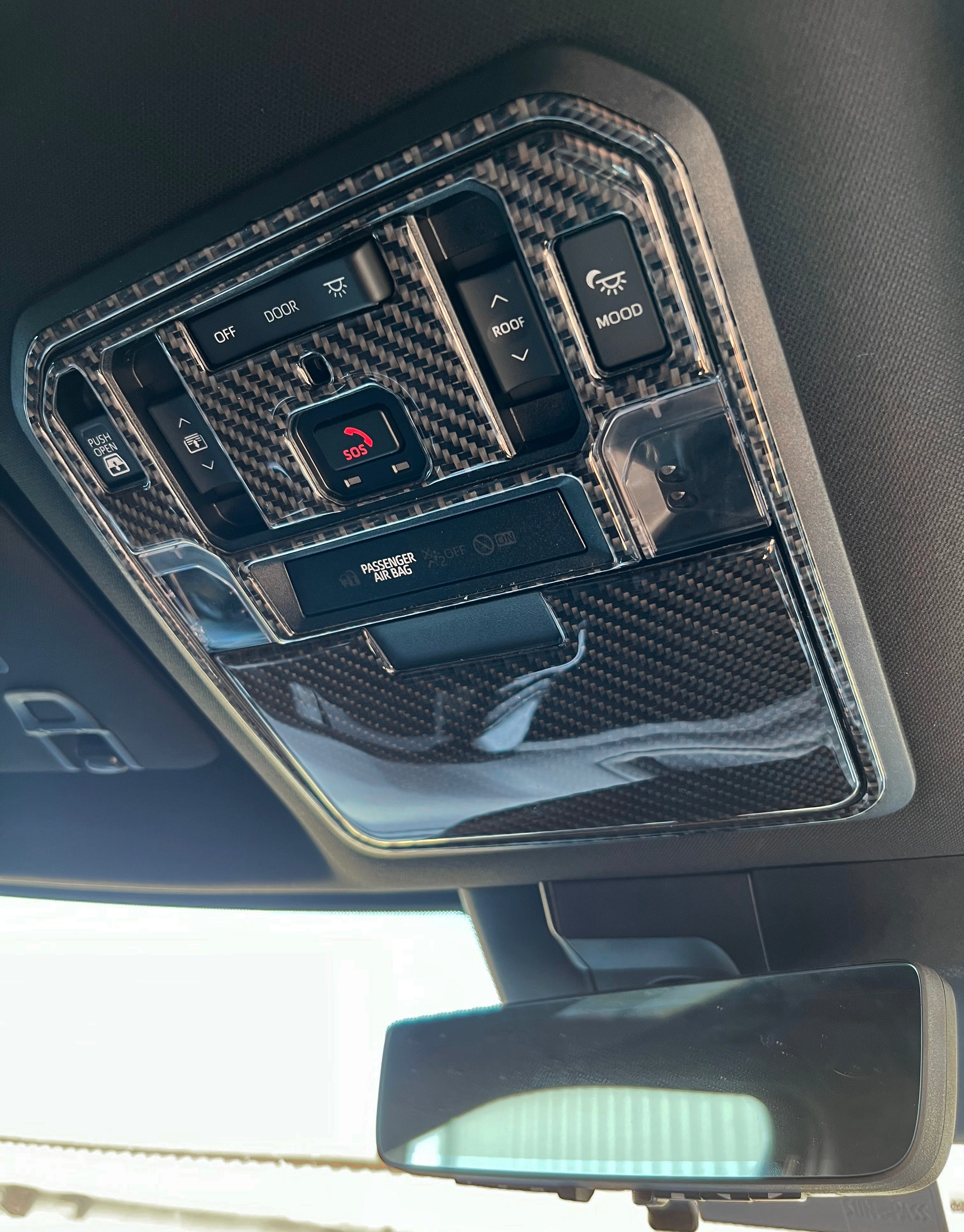 TUFSKINZ Overhead Switches Accent Trim piece is designed to perfectly overlay the overhead storage compartment and switches on the roof. Prep and installation can simply be completed within 25 minutes.