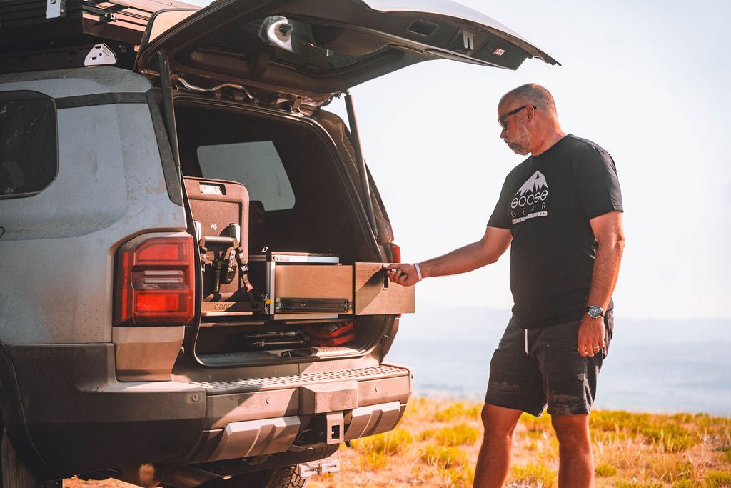 Goose Gear's Single Drawer Module is a great options to install next to our CampKitchen or IceBox for extra storage. It features Baltic Birch, 11 ply dovetail finished drawer boxes, mounted to 350# rated full extension drawer guides for smooth and durable performance. With locking compression latch these modules are built to last at the least amount of weight possible.