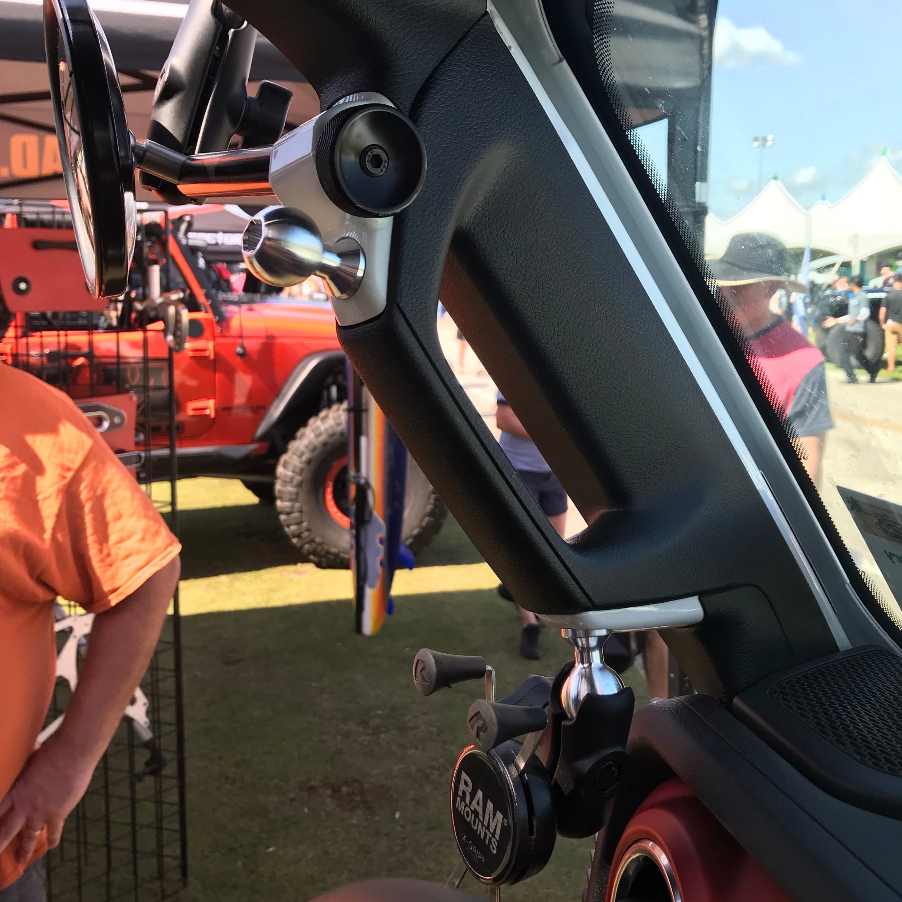- Montaje de espejo en pilar A y montaje de bola de 1”