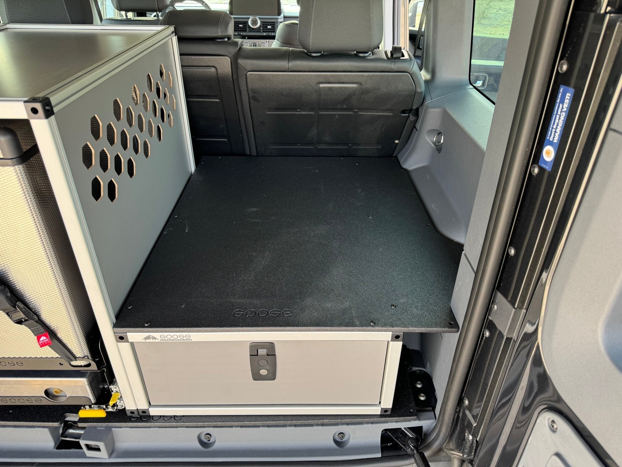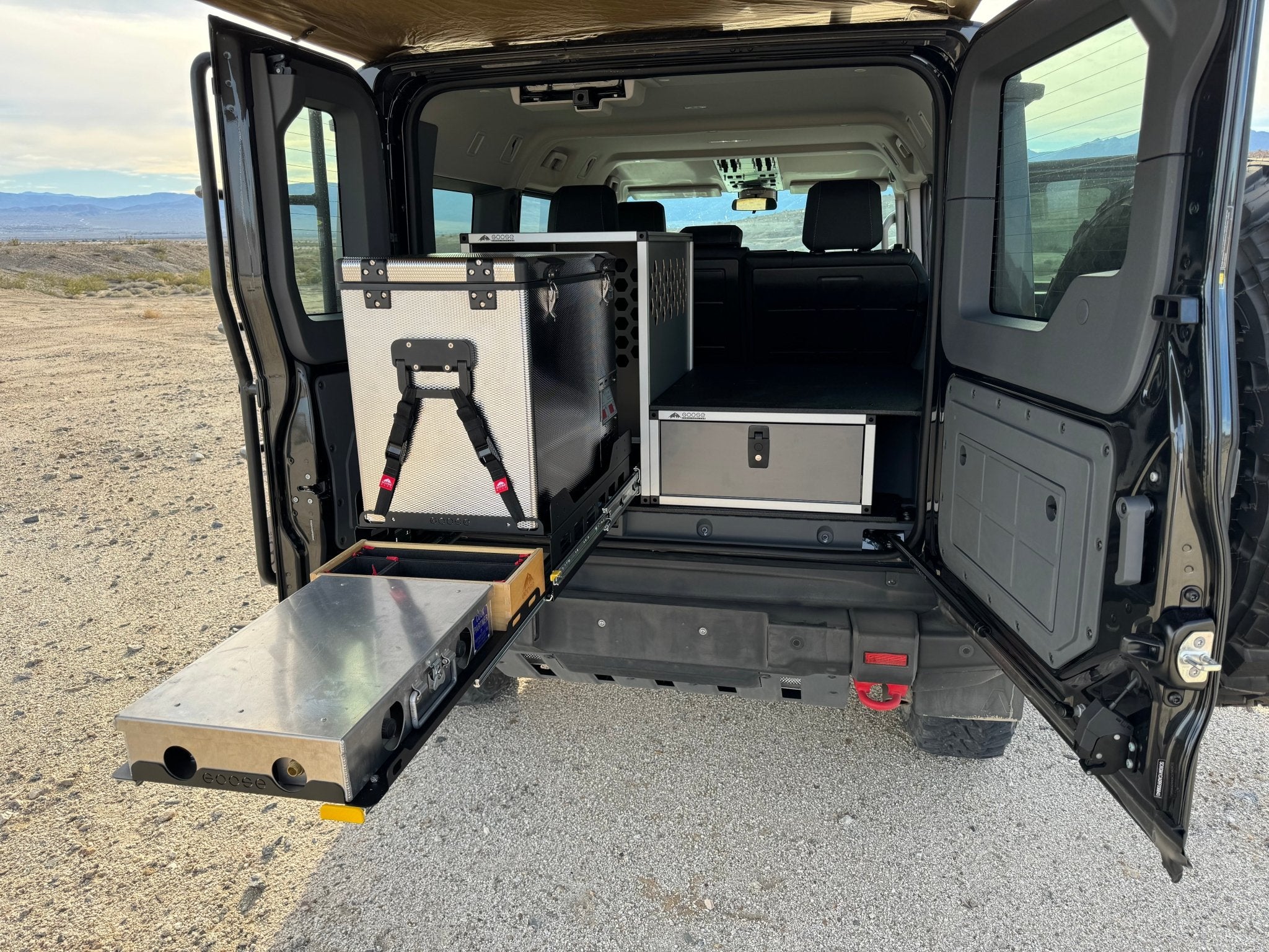 Al utilizar un cajón de 34", ganamos espacio de almacenamiento al que se puede acceder fácilmente y que deja mucho espacio en la parte superior para su equipo personal, como bolsas de dormir, almohadas y comida. Ahora, con la placa superior ajustada, obtiene una trampilla de acceso localizable para almacenamiento adicional que se puede usar para guardar equipo adicional. Con la capacidad de almacenar equipo en la parte superior de la CampKitchen, puede mantener toda su despensa en la parte superior de la CampKitchen.