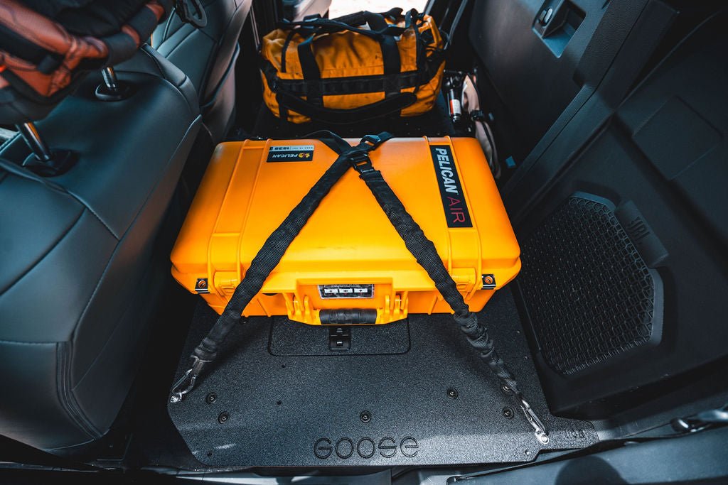 La eliminación del asiento de la segunda fila de la cabina doble híbrida está diseñada para crear una plataforma plana que puede usar para asegurar su equipo, para la cama de sus perros y también puede usarse para guardar su refrigerador o hielera.
