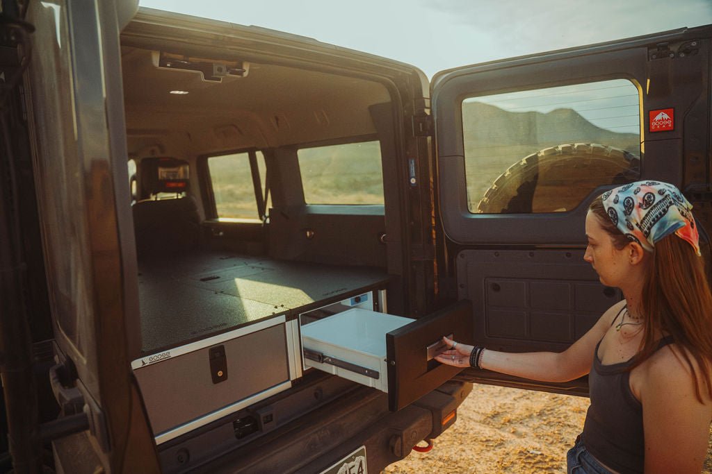 Convierte tu Ineos Grenadier en el vehículo definitivo para la aventura con nuestro paquete Stealth Sleep & Chef , diseñado para brindar comodidad, espacio de almacenamiento y conveniencia. Este paquete ofrece espacio para que duerman dos personas y, al mismo tiempo, brinda abundante espacio de almacenamiento y un refrigerador incorporado para viajes prolongados.