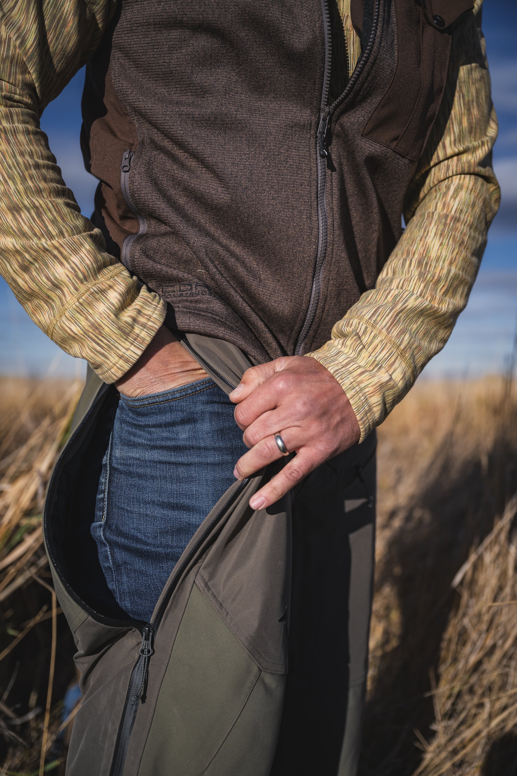 Voormi sabe que la comodidad es esencial para esas largas horas en el campo. Por eso, los petos V1 cuentan con una parte trasera ligeramente aislada, que proporciona una calidez esencial contra los asientos fríos o el suelo helado. Las perneras se abren por completo para ponerlas y quitarlas fácilmente y ofrecer ventilación, lo que te permite adaptarte sin esfuerzo a las condiciones cambiantes.