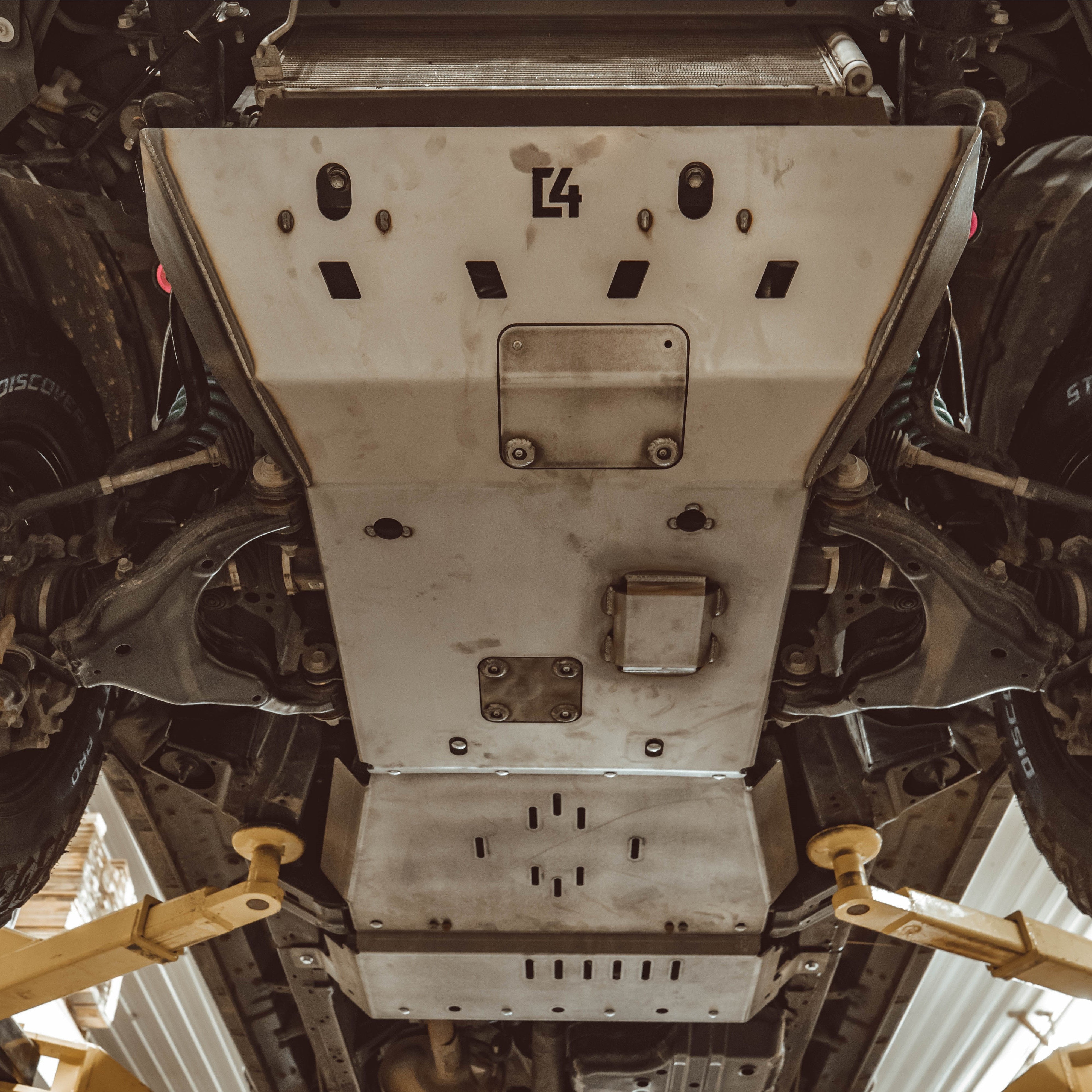 - Cobertura: Protege el motor, la transmisión y la caja de transferencia con tres placas protectoras independientes que se atornillan entre sí.