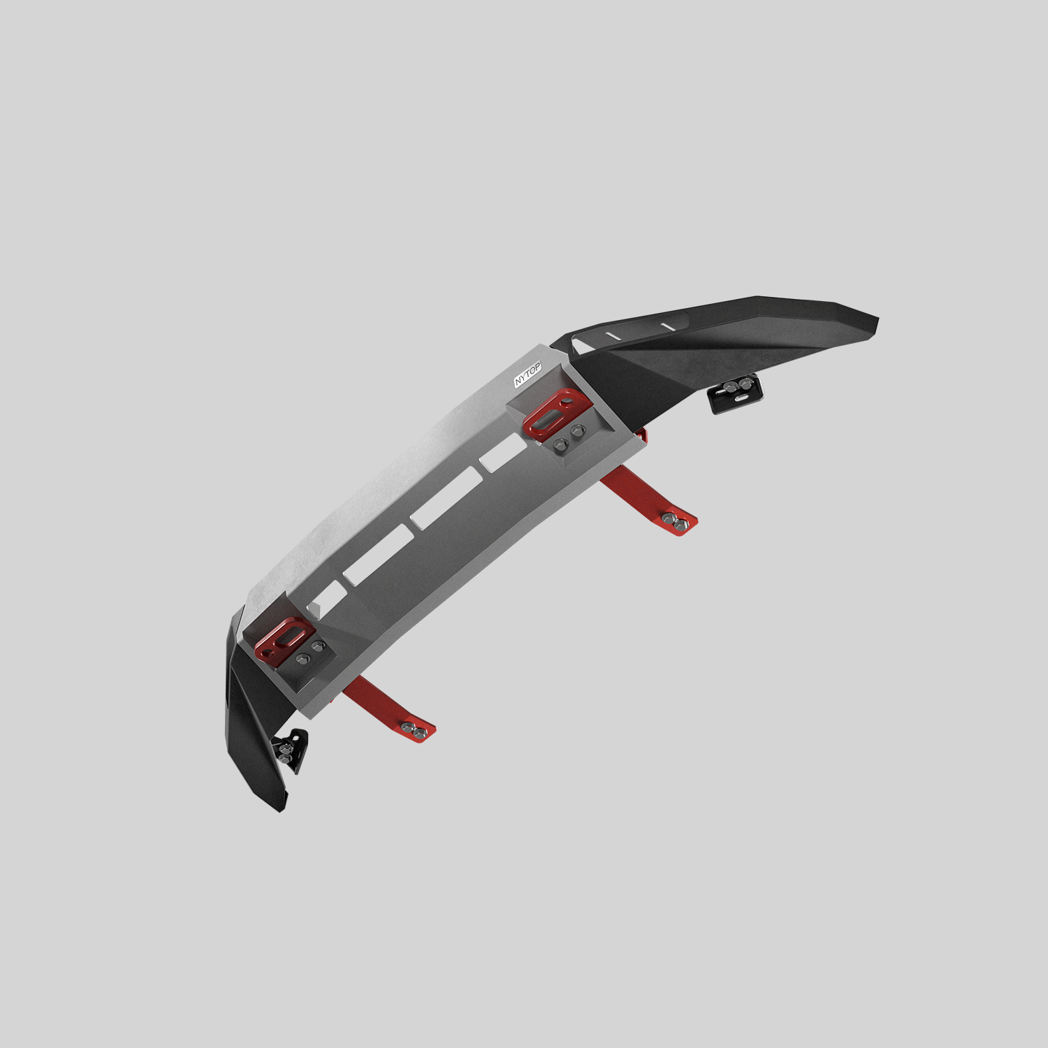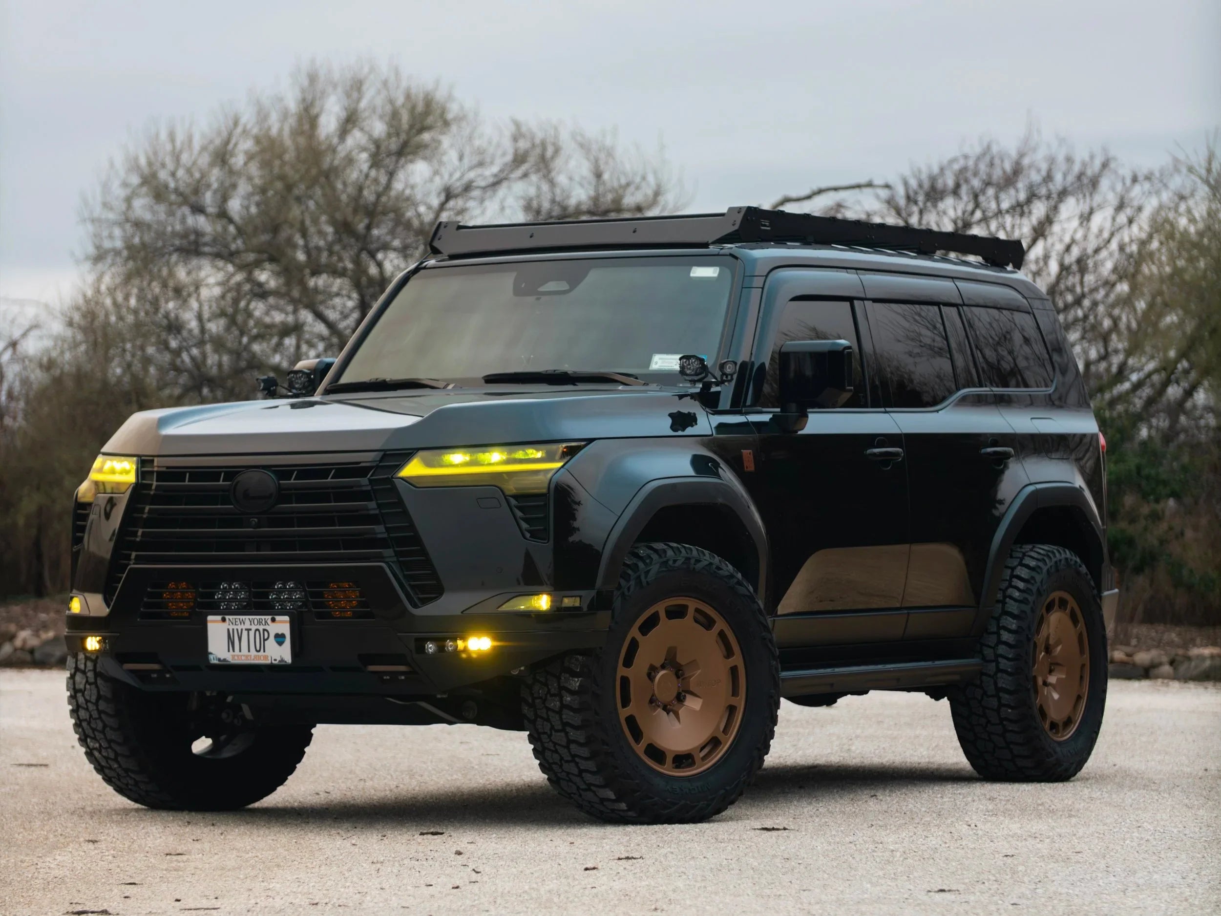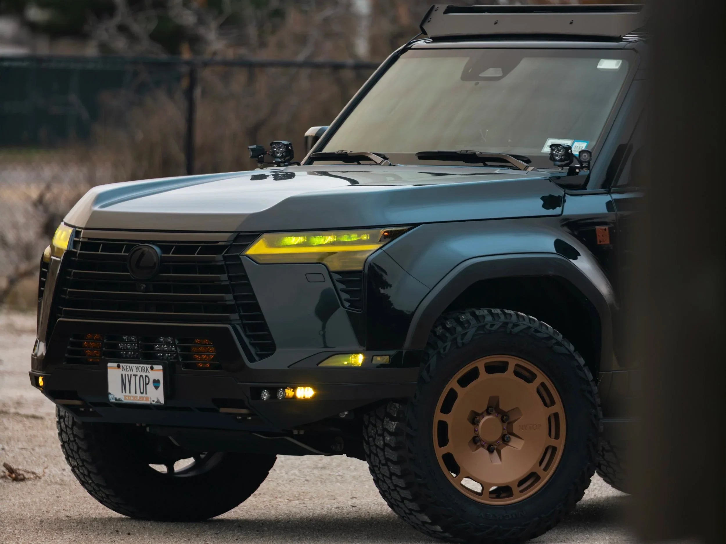 Our Lexus GX550 Front Hybrid Bumper is finished in wrinkled black powder coat, and TIG welded with 3/16-inch high-strength steel to ensure durability, providing an extra layer of protection, increased clearance and approach angle (around 5°), while replacing the lower plastic valance. No cutting or trimming of the bumper is required. A lightweight aluminum version in silver (middle bumper only) is also available (built to order, estimated lead time 8-14 weeks).