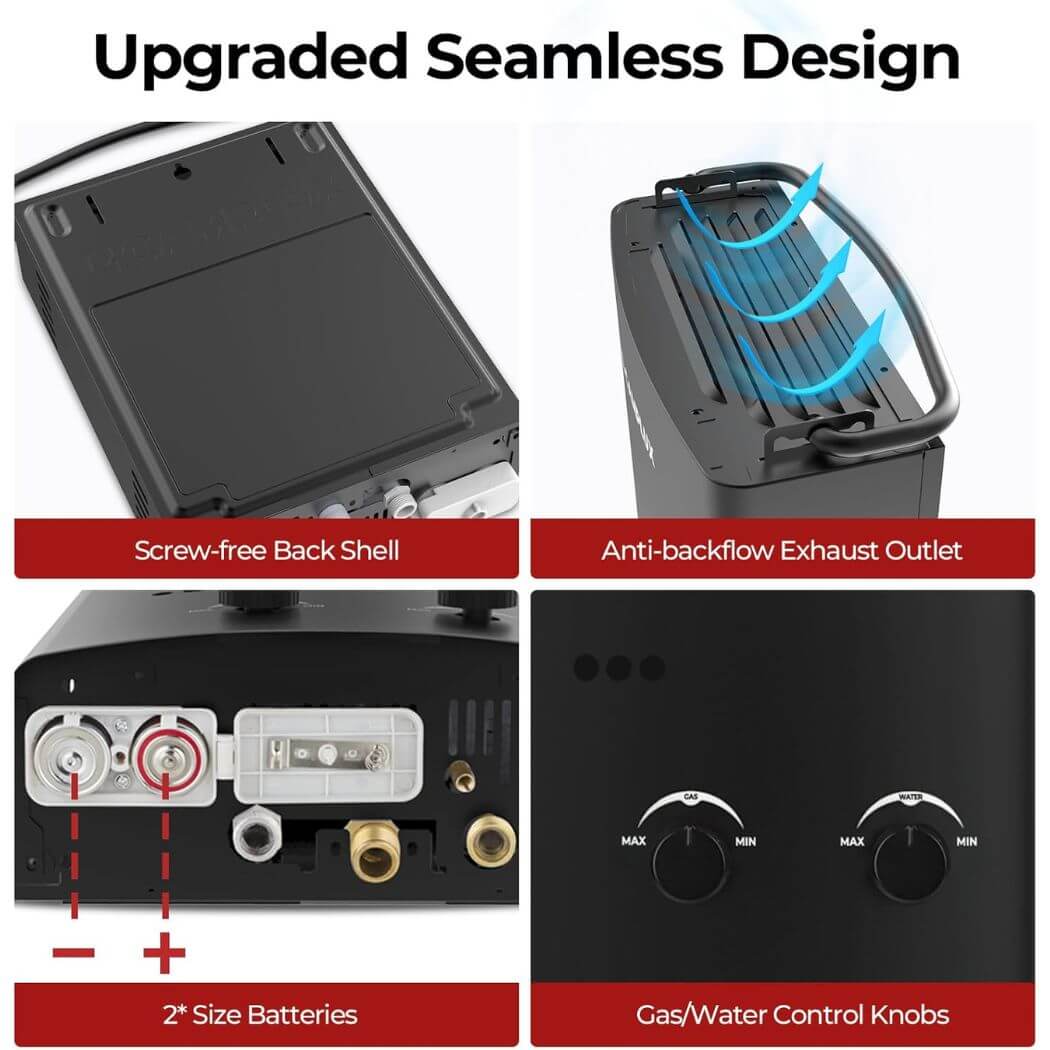 Camplux Propane Off-Grid Portable Water Heater for RV, Trailer & Camper - Black