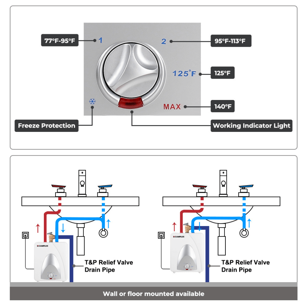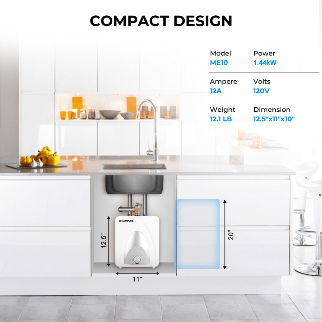 Camplux Electric Mini Tank Point of Use Water Heater 120V - 1.3 Gallon
