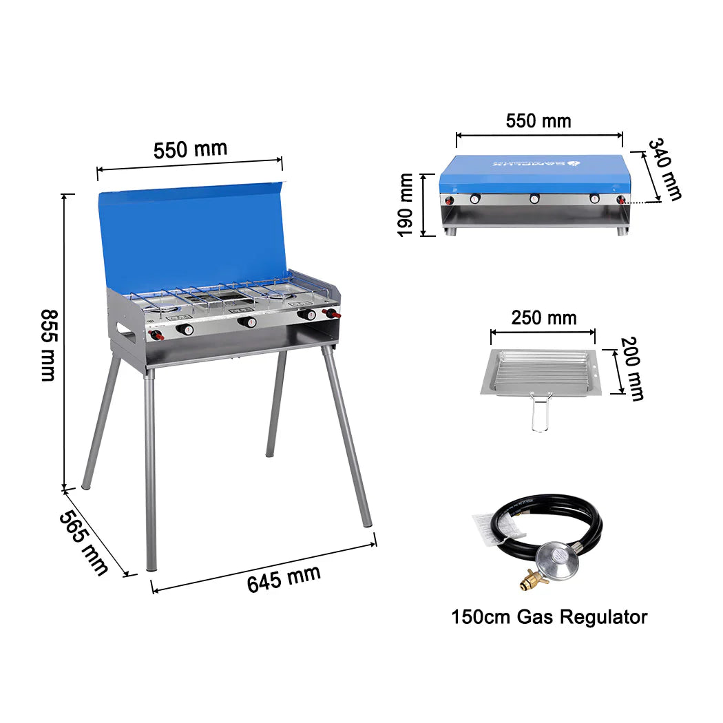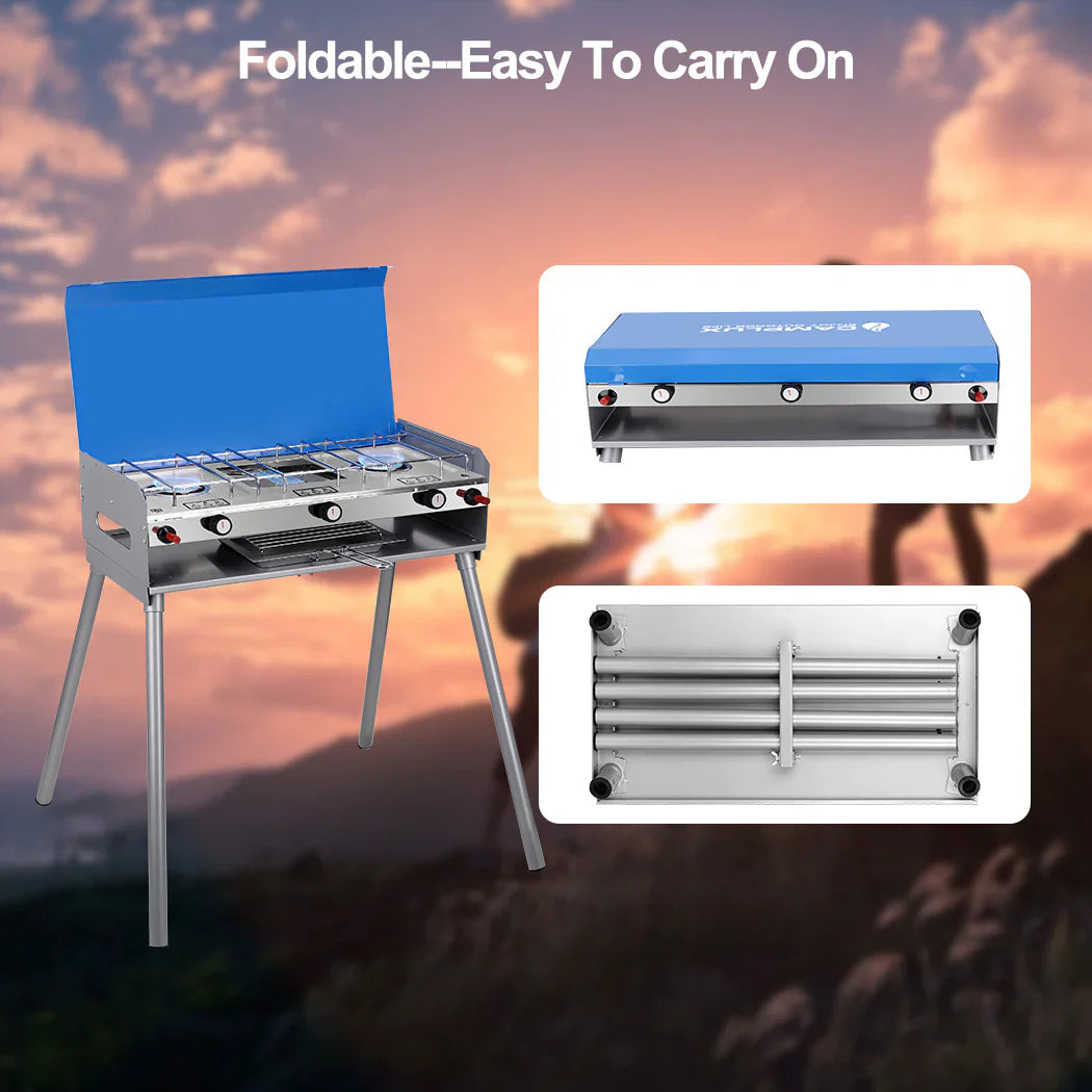 CAMPLUX Portable Camping Stove with Legs 2 Burner Gas Grill Butane BBQ Stove
