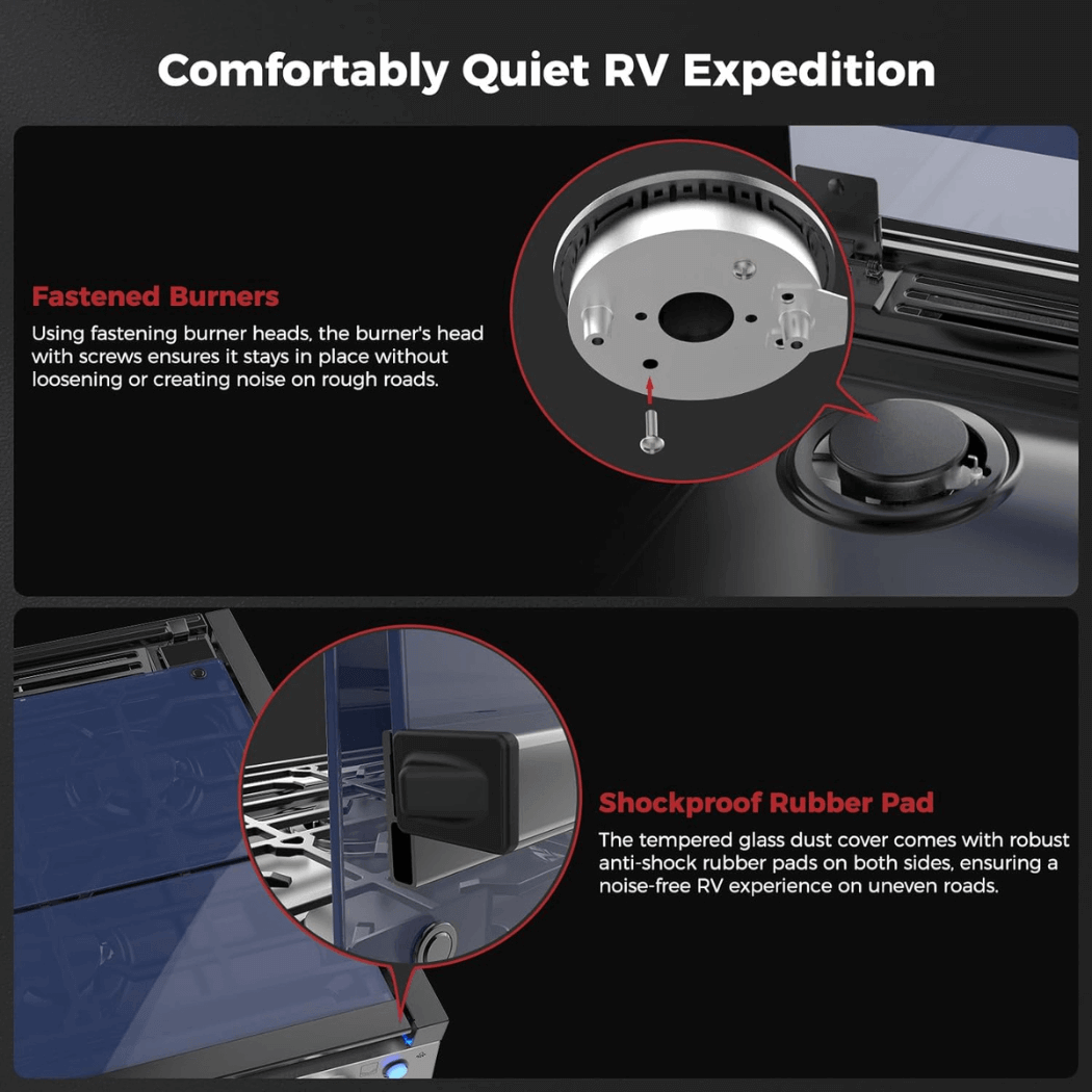 • Easy Maintenance-This RV stovetop is made with an enamel surface, which is heat resistant and has non-stick properties. Also comes with cast iron removable grate, dustproof tempered glass cover, and oven drip tray