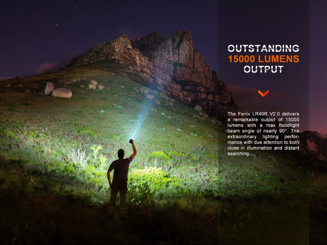 The LR40R V2 boasts 15,000 lumens and 196,464 candela output providing a useful range of over half a mile (900m). Comfortably controlled with one hand, this 6.89" A6061-T6 aluminum device offers four lighting modes, adjustable brightness, and an internal 5000mAh battery that powers the impressive output as well as an ultra-long 177-hour run time in eco spot mode (10 lumens). Perfect for extreme conditions, an IP68 rating, a temp range of -35° to 45°C, plus dual-usage in emergencies as a power bank, this searchlight is essential for any outdoor worker, search and rescue team member, or explorer.