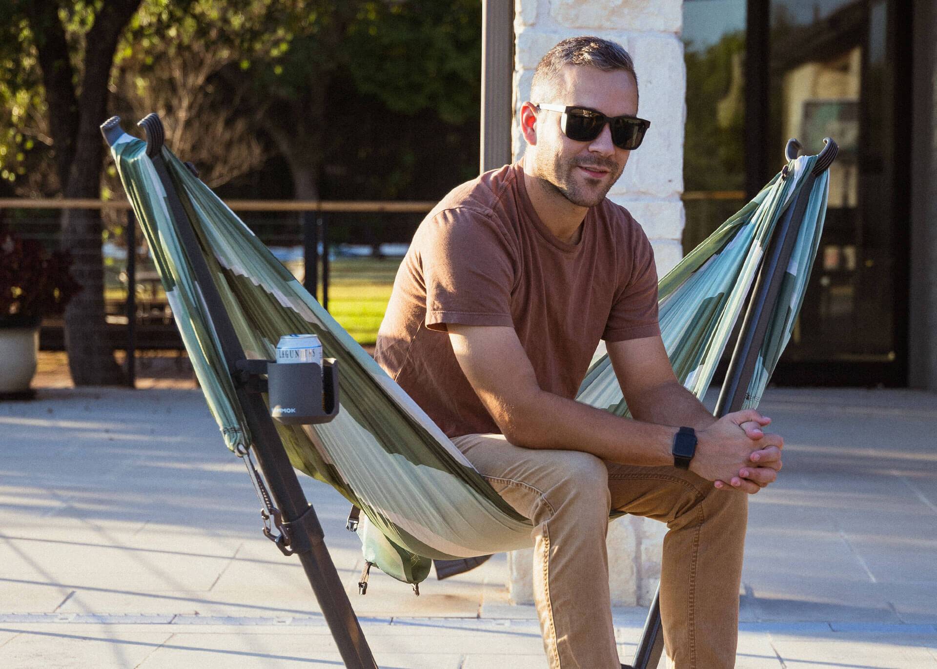 The perfect addition to your Swiftlet portable hammock stand. Swiftlet Cup Holder easily fastens to either arm on your Swiftlet to keep your drink off the ground and within reach.