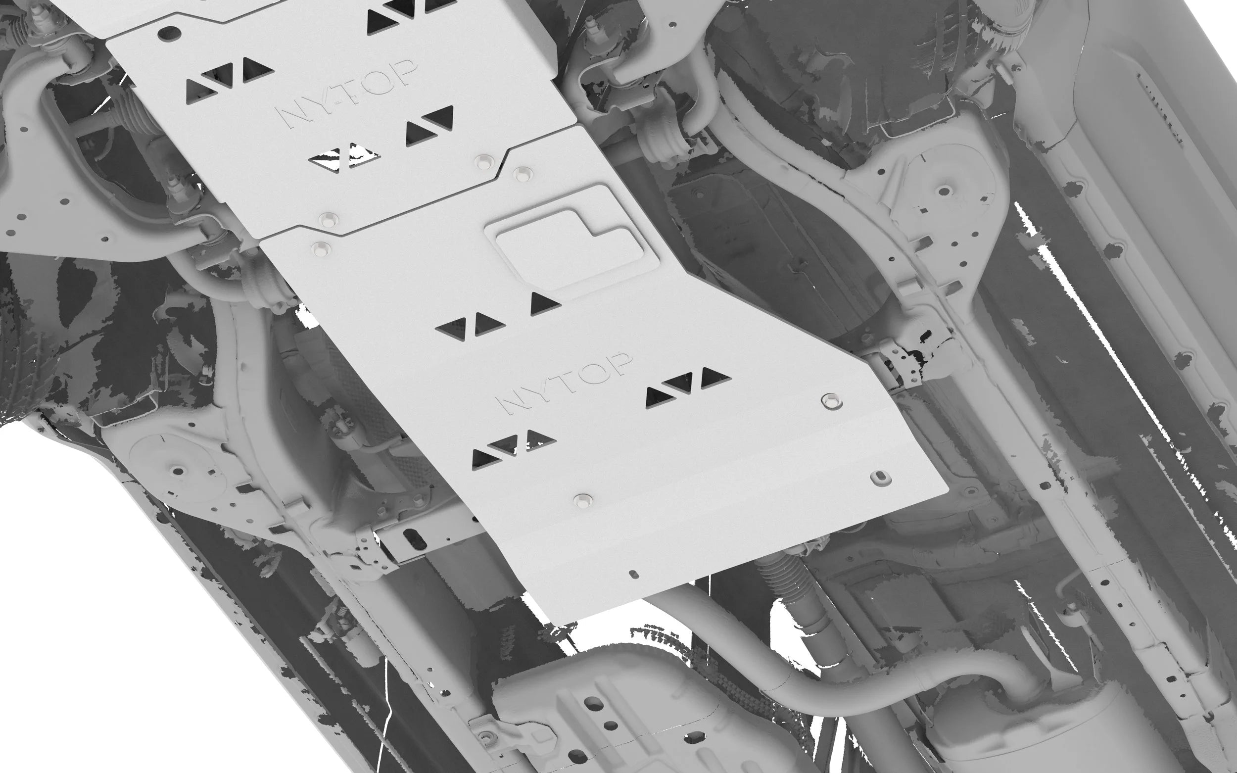 Our Not Your Typical Skid Plate Assembly for the 6th Gen Toyota 4Runner is TIG welded with 1/4-inch raw aluminum, providing protection to both the engine and transmission.