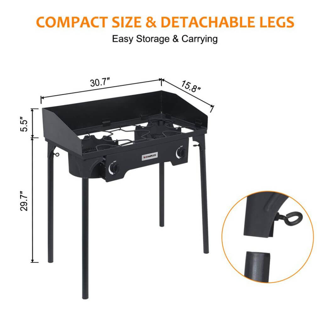 - High Quality - Double Propane burner stove made of heavy cast iron with weatherproof and high-temperature resistant coating. It can be your long-term companion for outdoor cooking