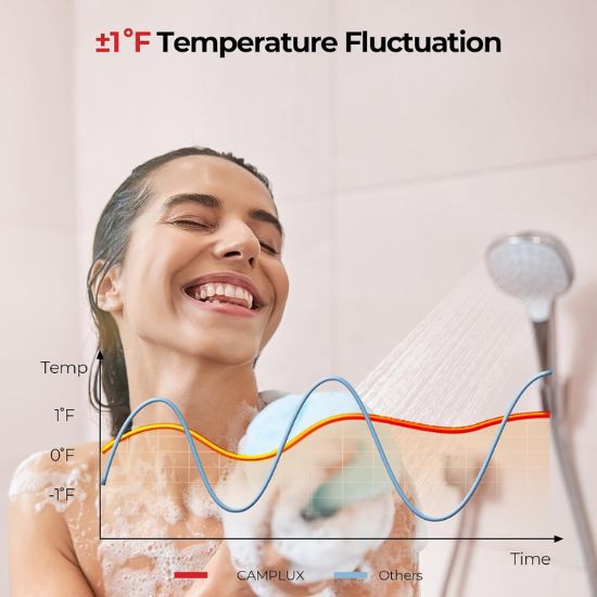 - 【±1 ℉ Temperature Control】With precise hot water control within ±1 ℉,using advanced water flow sensors and a smart chip with 1,000s calculation, ensuring steady temperature for optimal comfort in any home