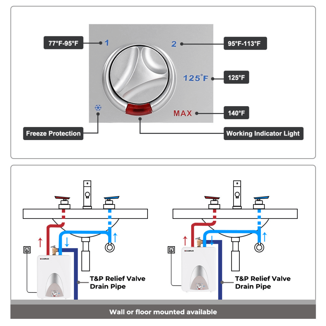- Saving Energy & Money- Under sink water heater built-in insulation foam, reduce heat loss