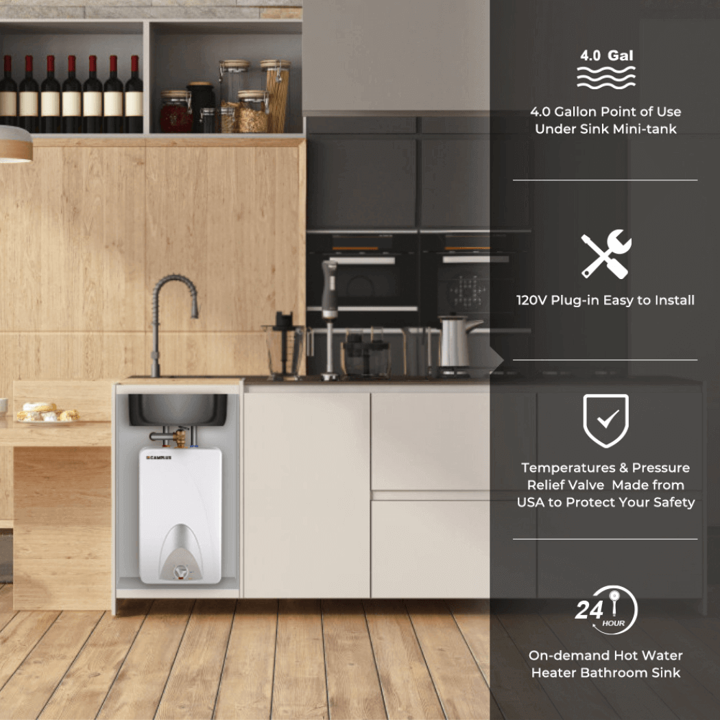 Camplux Electric Mini Tank Point of Use Water Heater 120V - 4.0 Gallon