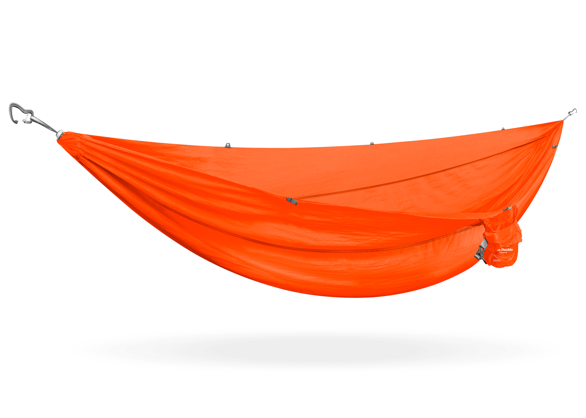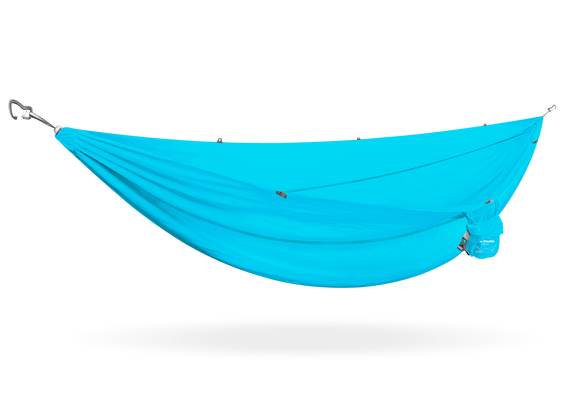 The Roo Double hammock neatly packs into an attached roll-top, water-resistant stuff sack about the size of a jar of peanut butter. Keep it in your day pack or the backseat of your car, and you’ll always be ready to hang.