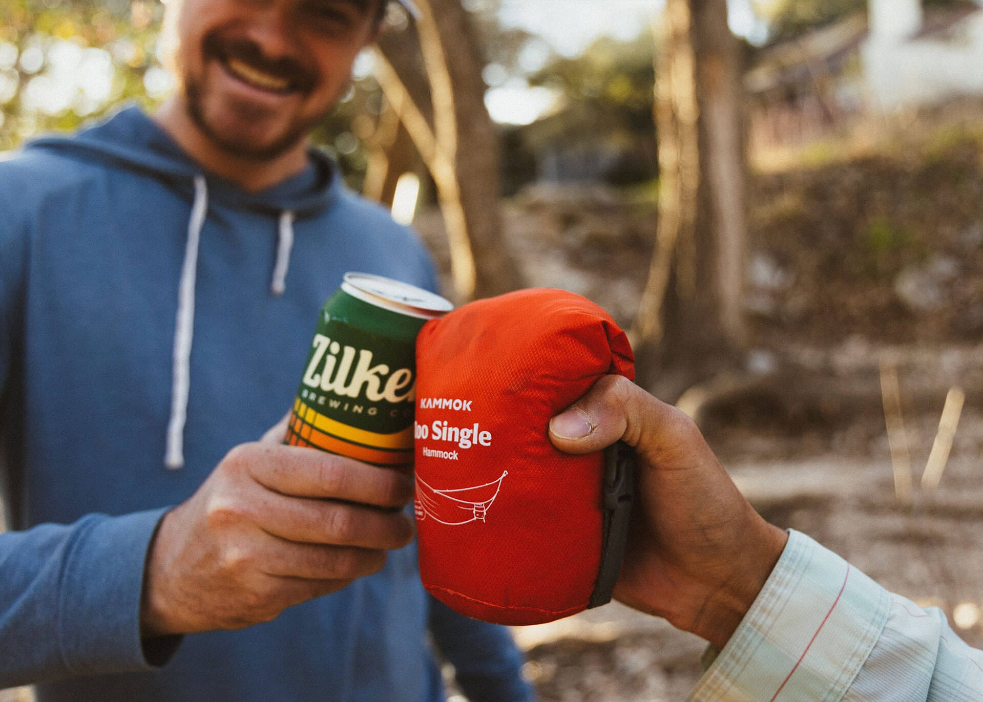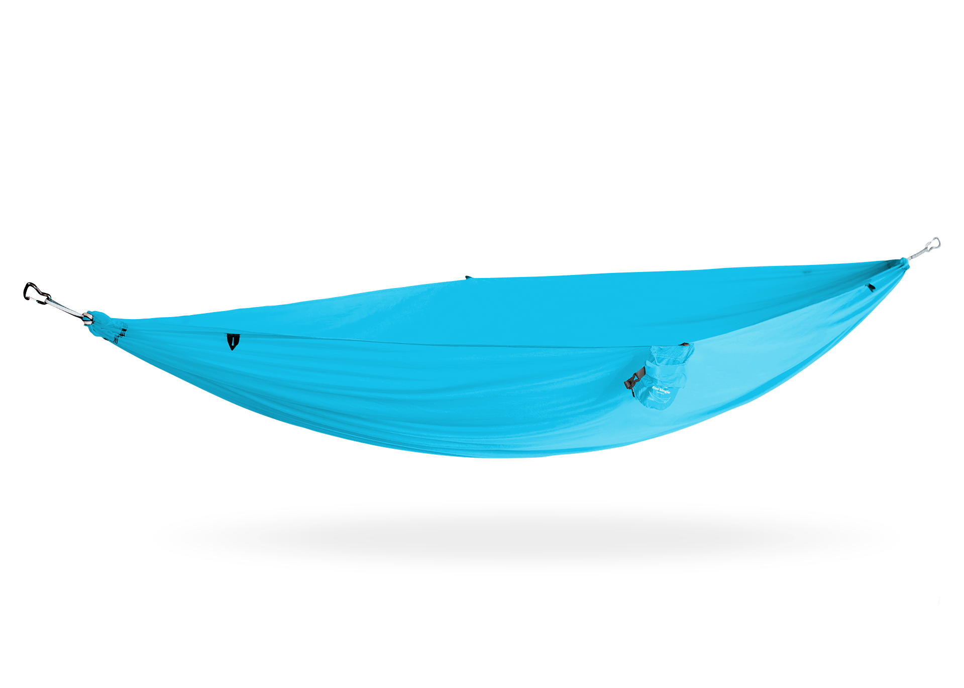 The Roo Single hammock neatly packs into an attached roll-top, water-resistant stuff sack about the size of a can of beer. Keep it in your day pack or the backseat of your car, and you’ll always be ready to hang.