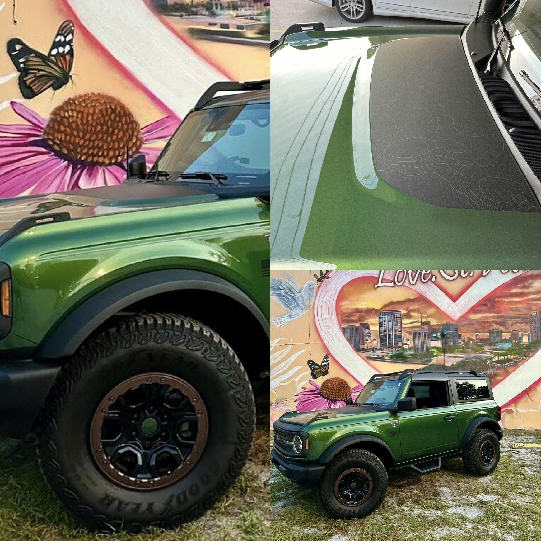 Long before the Bronco came out it has been customary for off roaders to put matte material on their hood to cut out glare. This glare can come from the sun or lights mounted above the vehicle's hood.
