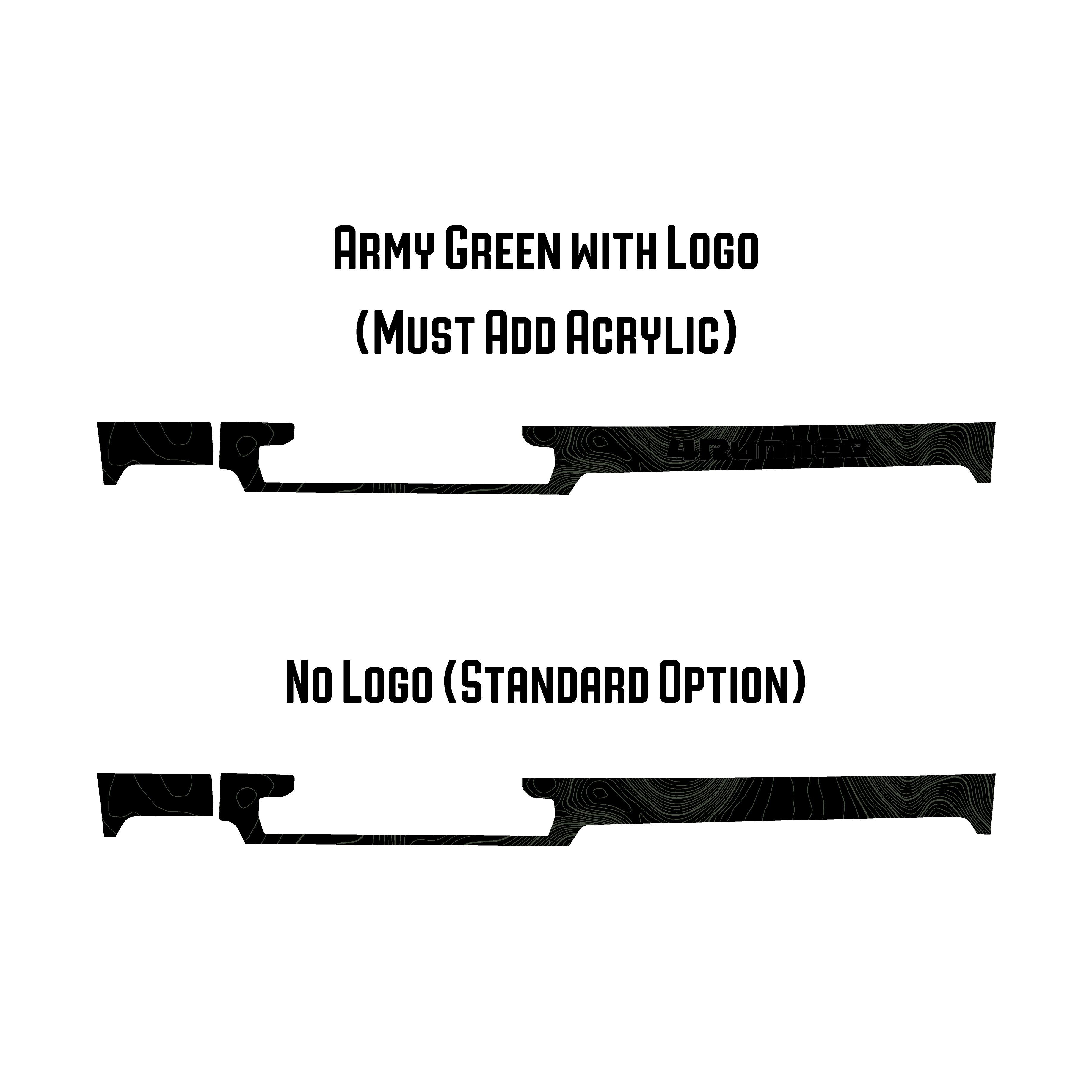 - Must add acrylic to have a logo