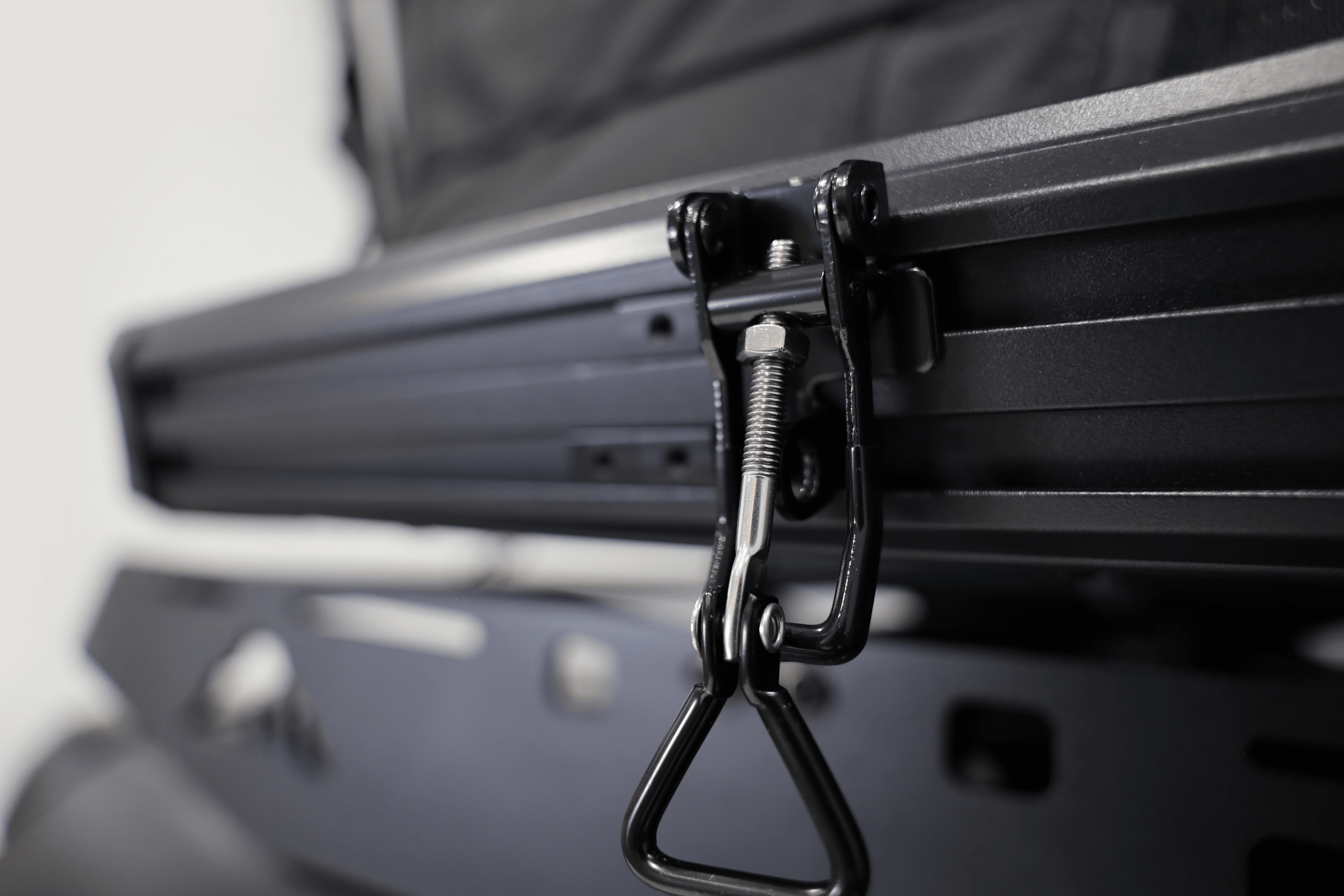 New and improved metal latches for the Evolution/Odyssey/Aspen series rooftop tents. Sold as a set of 4 latches with hardware as pictured for each latch.