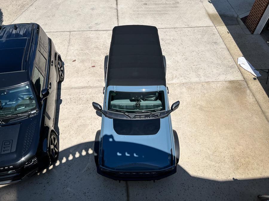 Long before the Bronco came out it has been customary for off roaders to put matte material on their hood to cut out glare. This glare can come from the sun or lights mounted above the vehicle's hood.