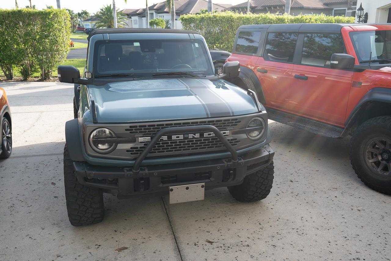Long before the Bronco came out it has been customary for off roaders to put matte material on their hood to cut out glare. This glare can come from the sun or lights mounted above the vehicle's hood.