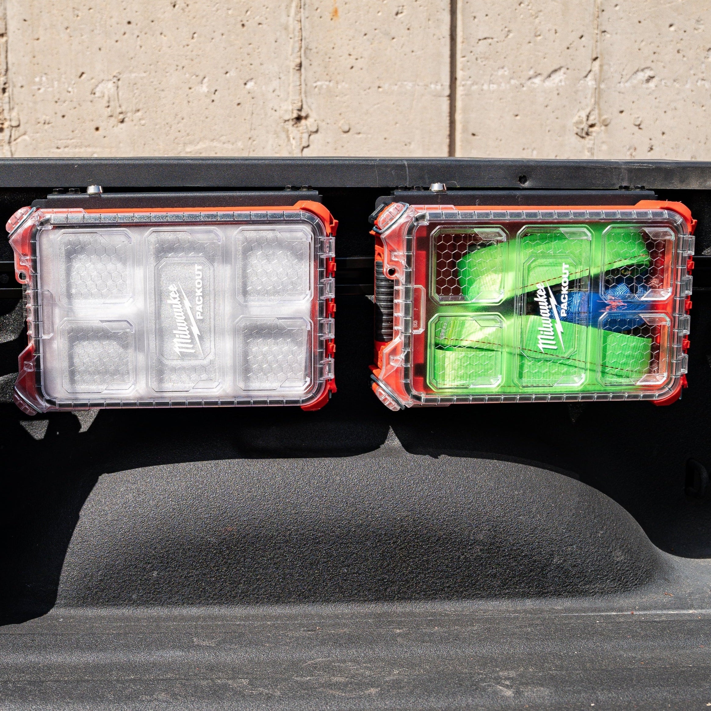 • Integral Panels: Compatible with Milwaukee Tool Packout Organizers. The world's only keyed, locking mounts that are compatible with Packout organizers. Attach and lock all full and compact Packout organizers. When locked, the organizers are fully secured and can't be removed.