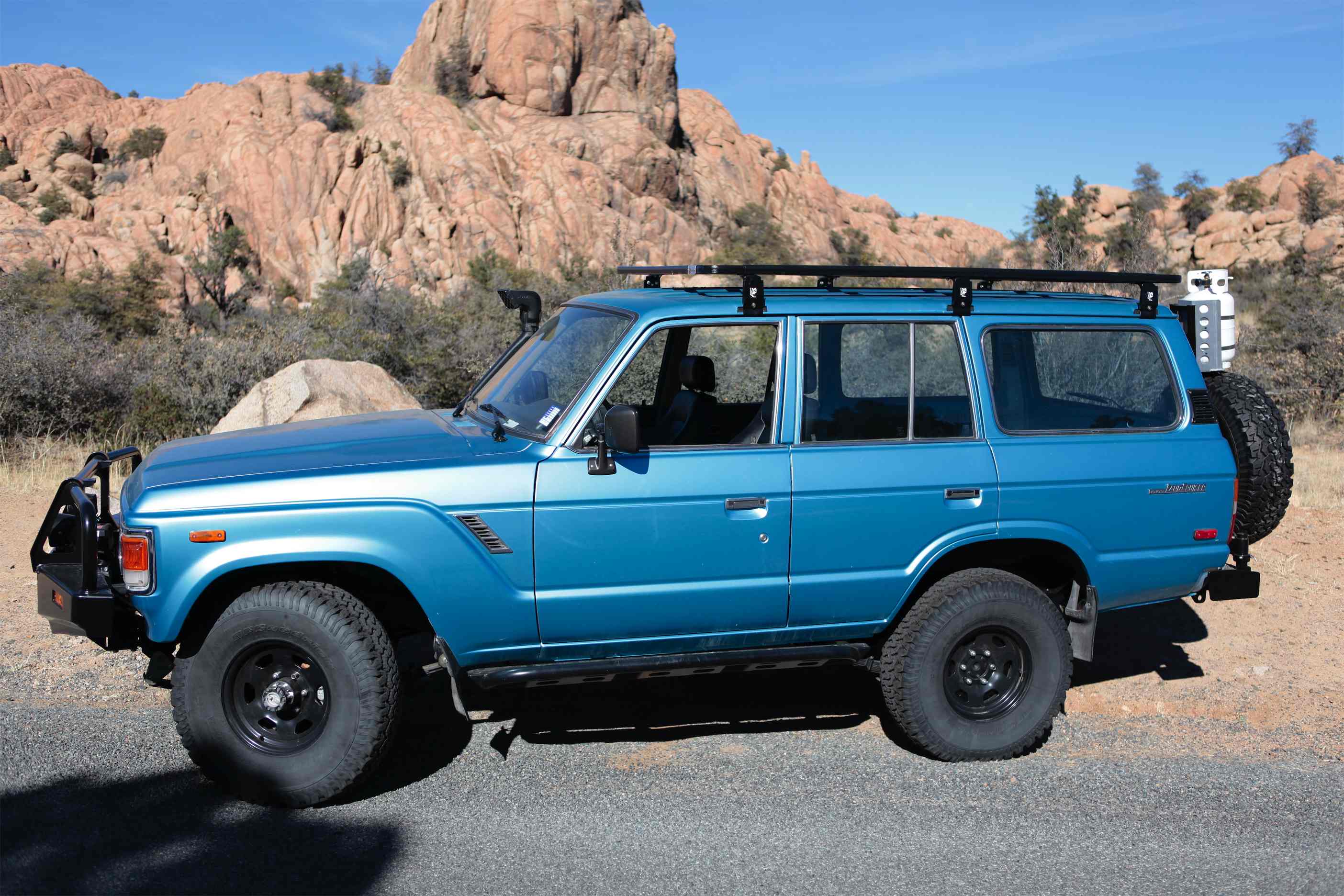 装备丰田陆地巡洋舰 80 系列 K9 车顶行李架套件