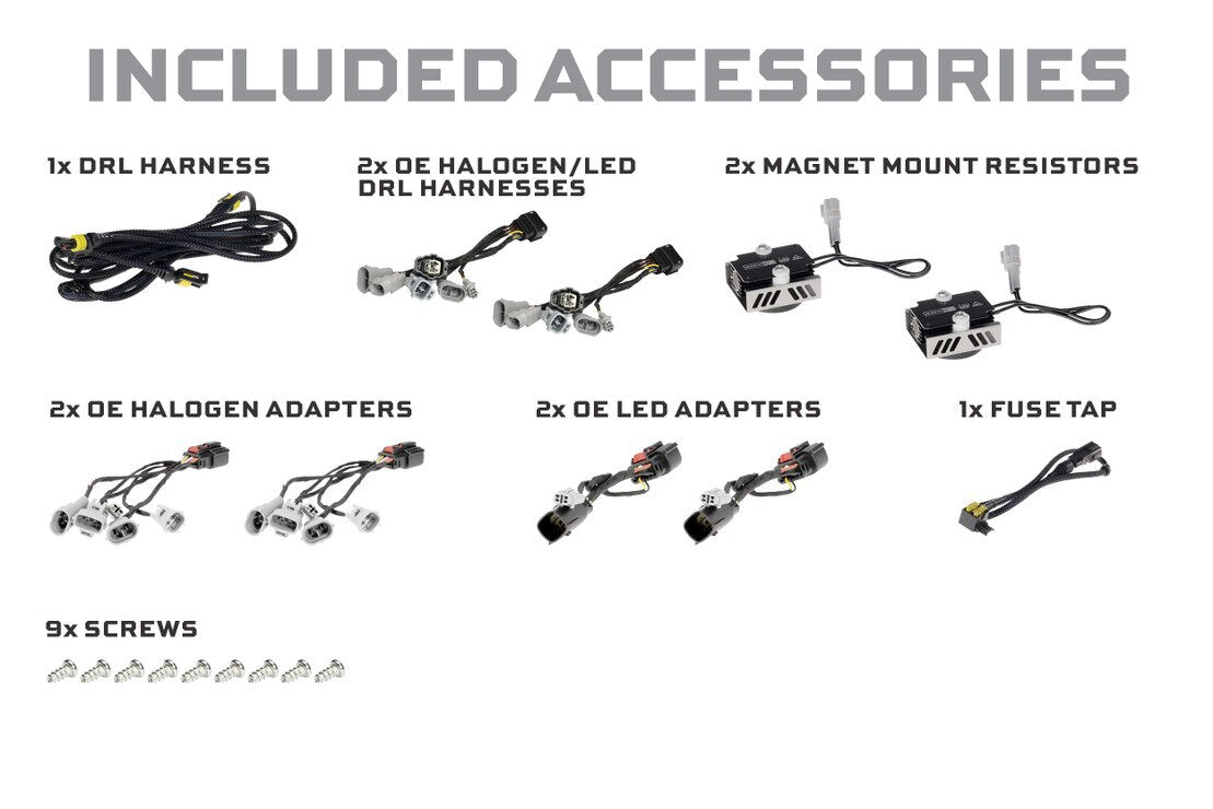 - DRL harness, fuse tap, magnet mount resistors