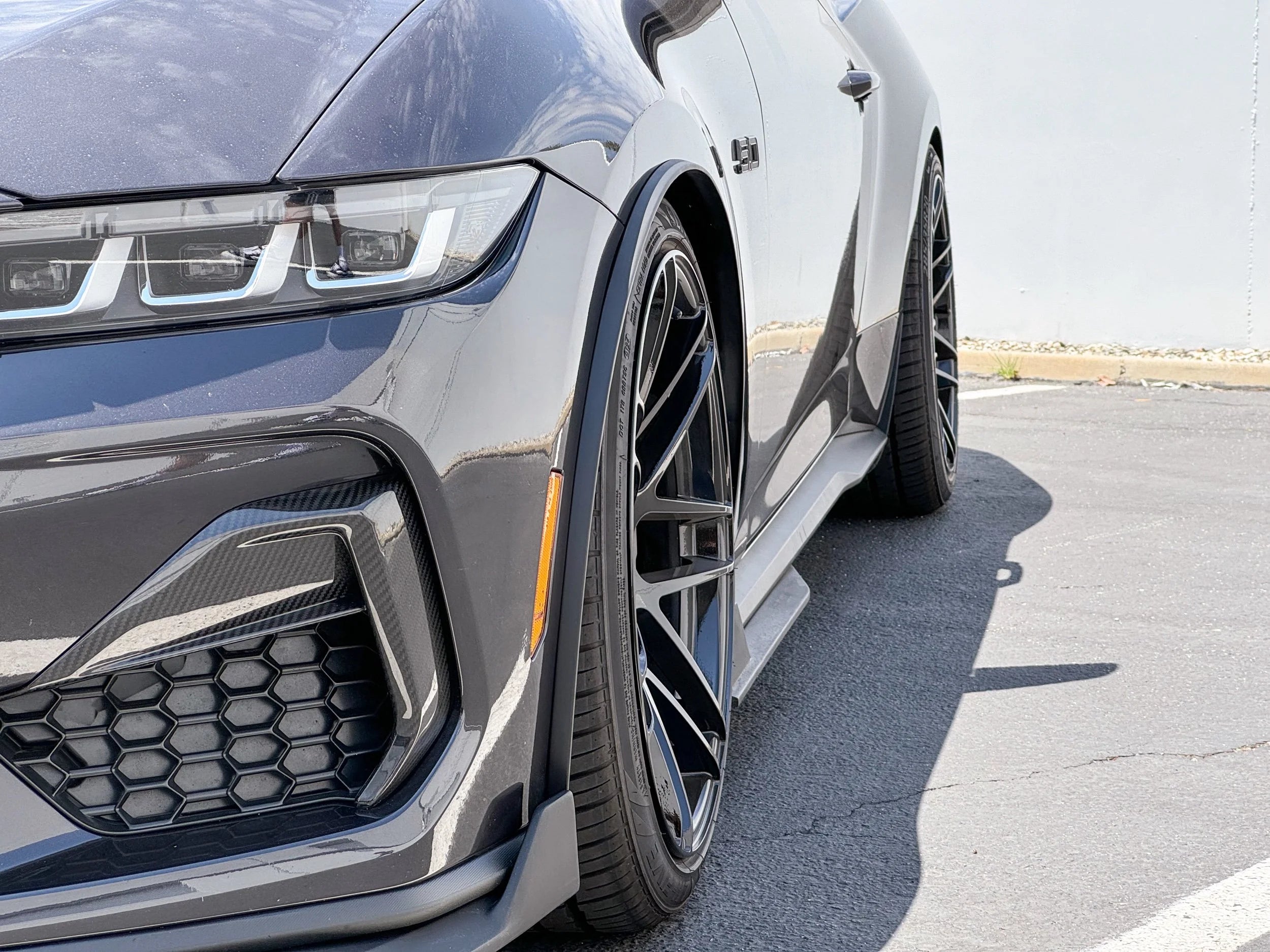 Our 2024-Current Ford Mustang Front Fender Flares are designed to provide extra coverage for wider front wheels and tires, as well as improved aerodynamics.