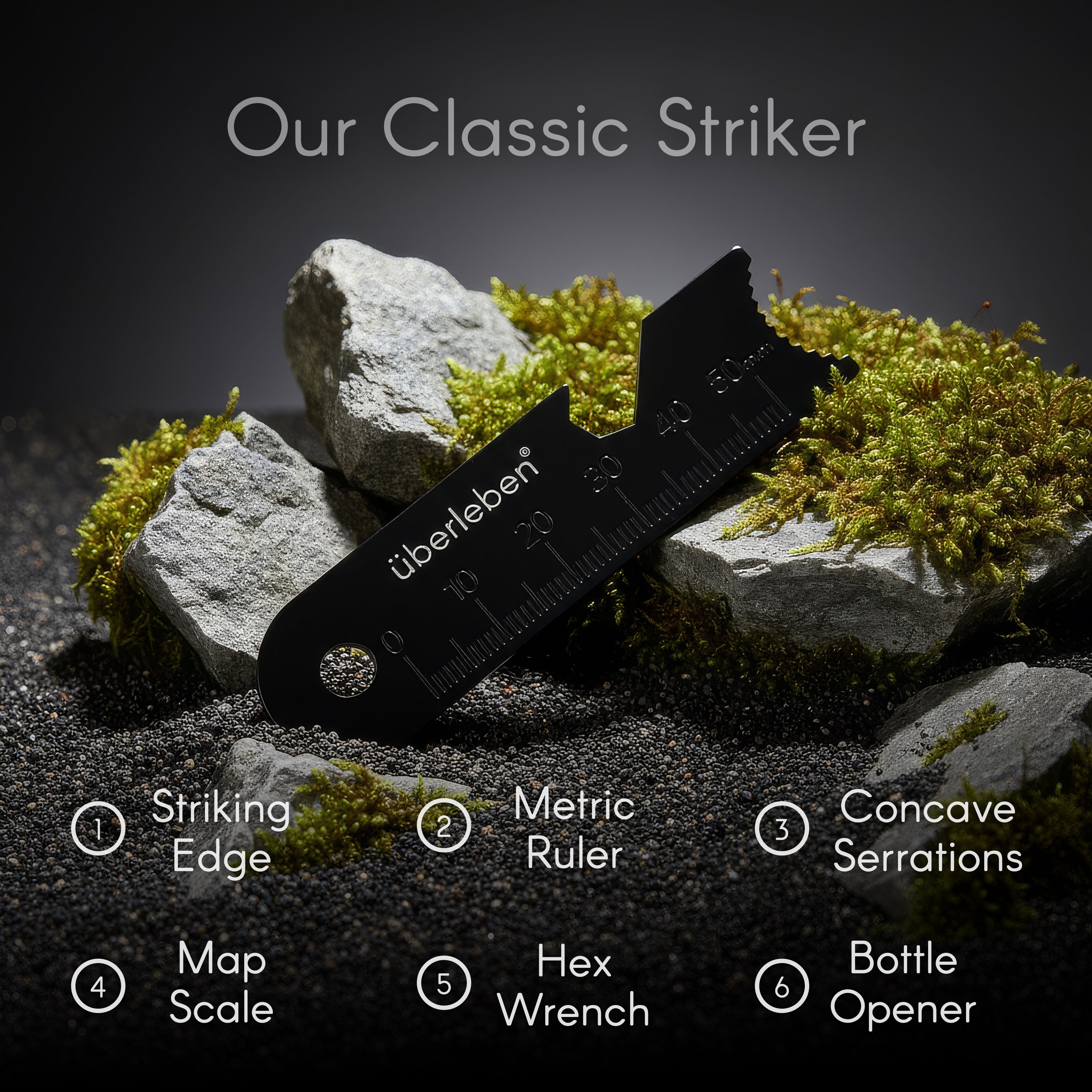 Includes leather lanyard and 6-function multi-tool scraper.