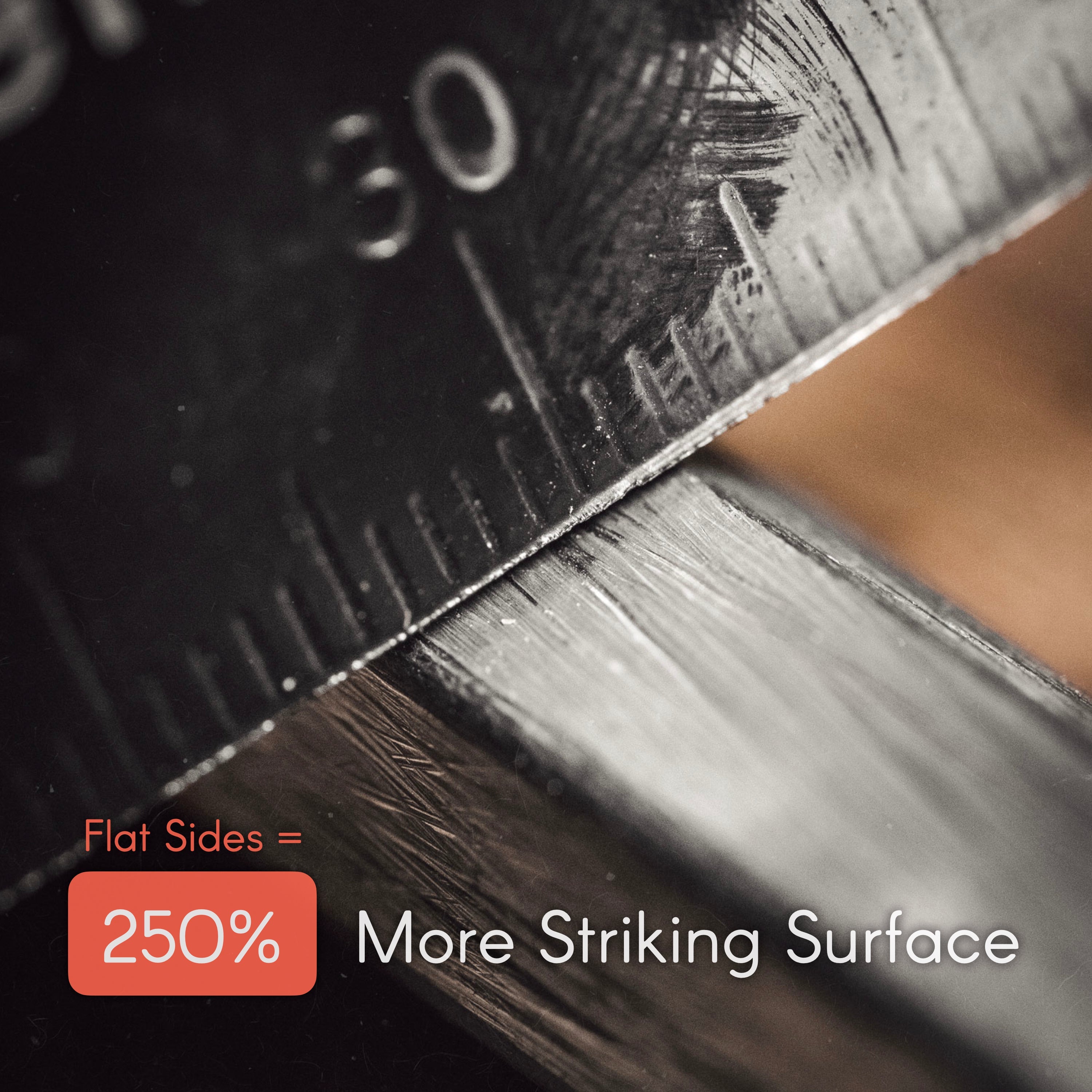 Flat profile design, for greater control and greater efficiency. Approx. 8mm of direct striker-contact on each side