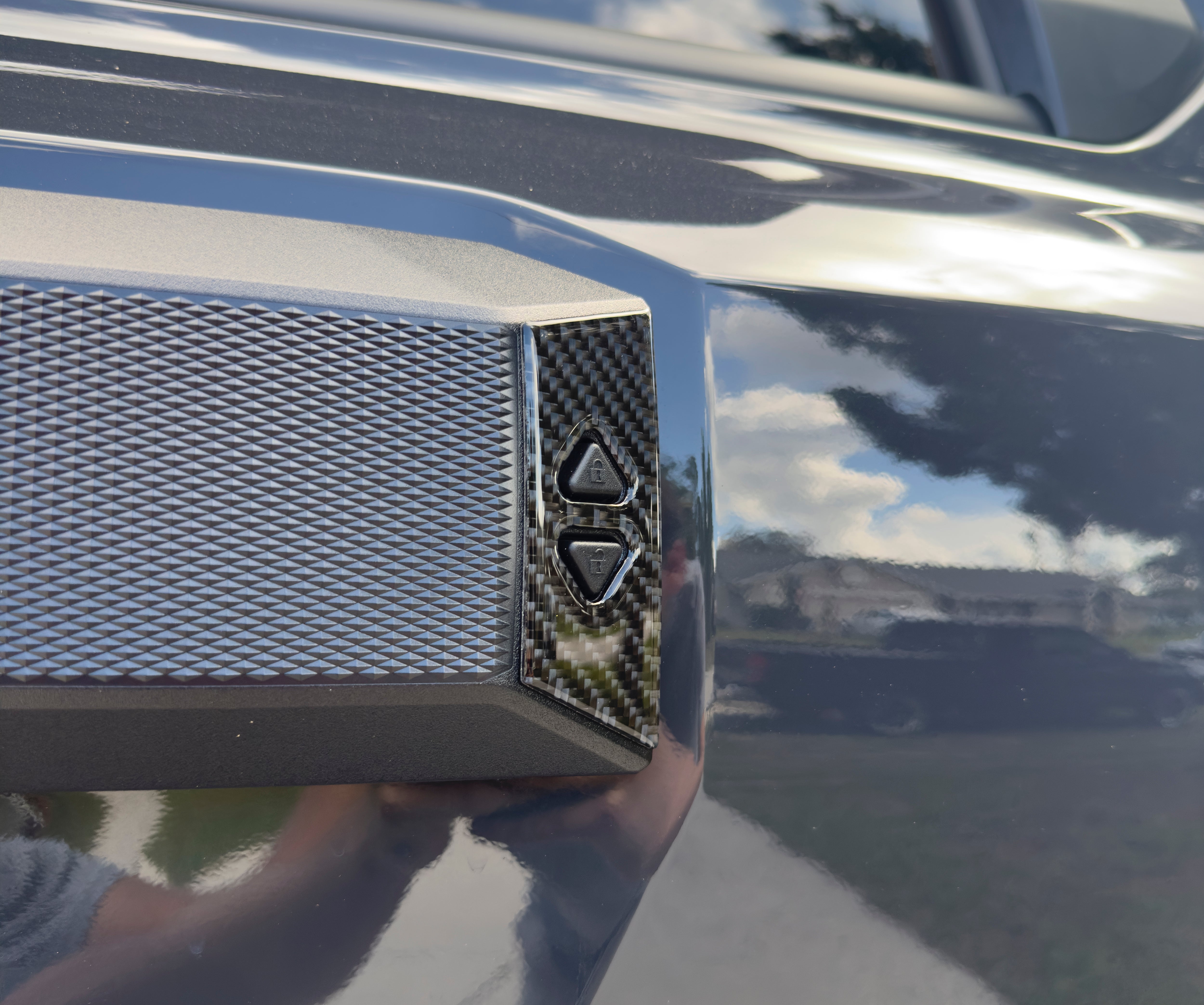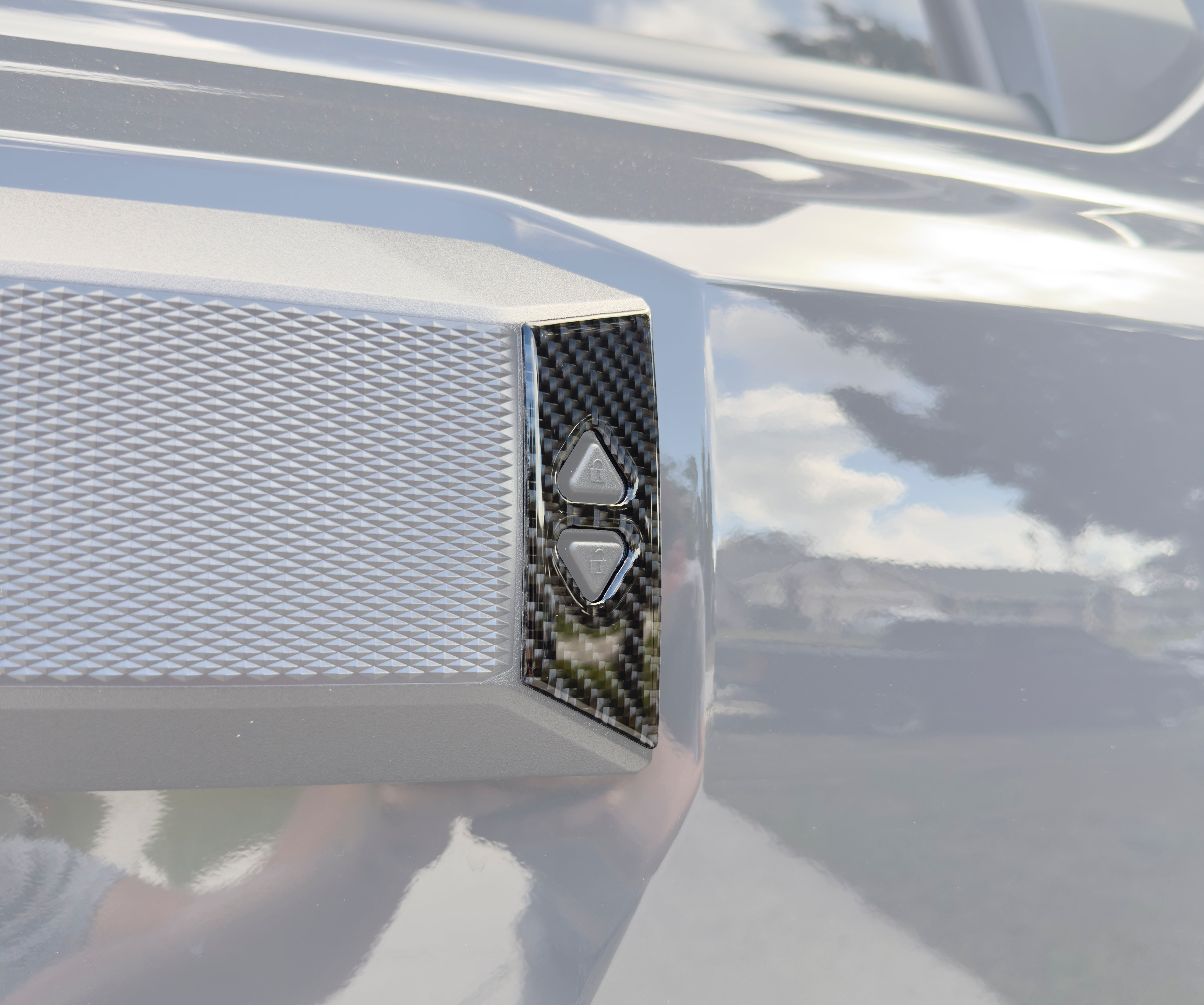 TUFSKINZ Liftgate Window Button Accent Overlays are designed to fit perfectly onto the surrounding trim rear liftgate window buttons. Prep and installation can simply be completed within 5 minutes.