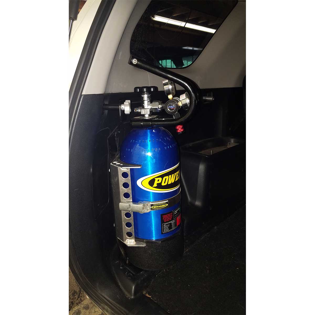 Mount your air tank or your power tank in a great location with easy access with M.O.R.E. power tank bracket. No drilling, uses factory holes, easy access to your factory jack compartment. Powder coated black.