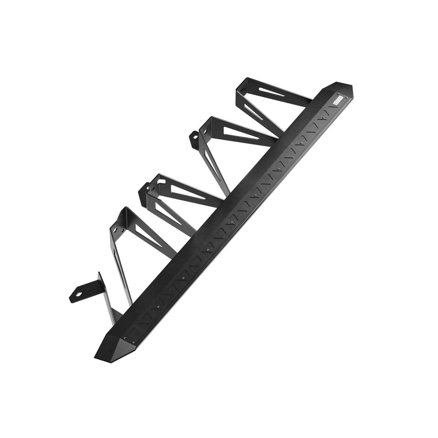 Crafted with a non-traditional design that forgoes conventional tubular construction, which allows for a 28.5° flat, angled bottom surface optimized for sliding, while the top remains level to provide a practical, 4-inch wide stepping platform for effortless vehicle entry and exit.